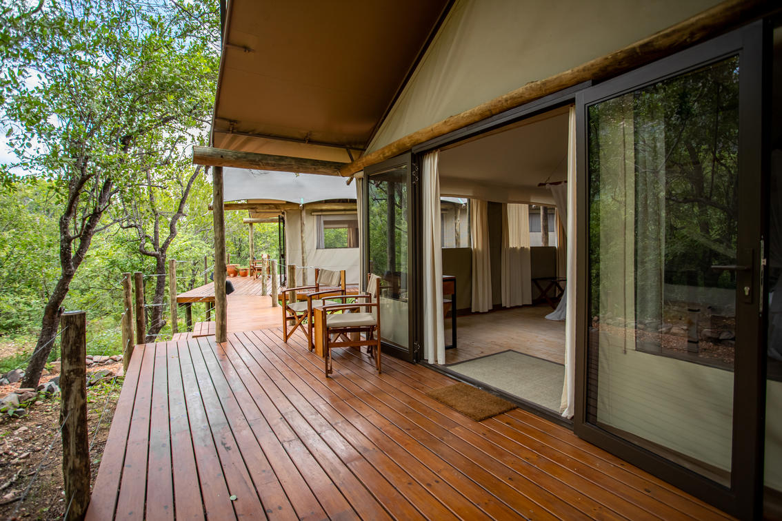 2 Classic Safari Tents with sharing private deck. Both with 1 king-size or 2 twin beds.