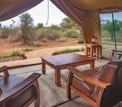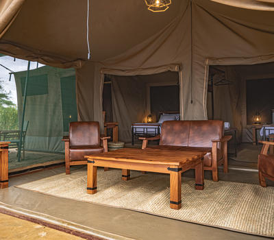 The Superb Family Tent includes two bedrooms, two 3-piece bathrooms and an enclosed sitting area with comfortable furnishings. The unobstructed view of Mt Kilimanjaro is a perfect setting while viewing the game at the waterhole, relaxing, and enjoying the sunset. Enjoy the luxury queen size beds, blanket chests, sitting area, writing desk and ensuite 3-piece bathrooms with 24-hour hot and cold running water.
