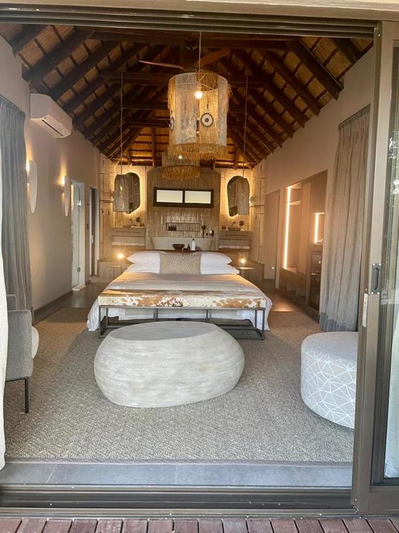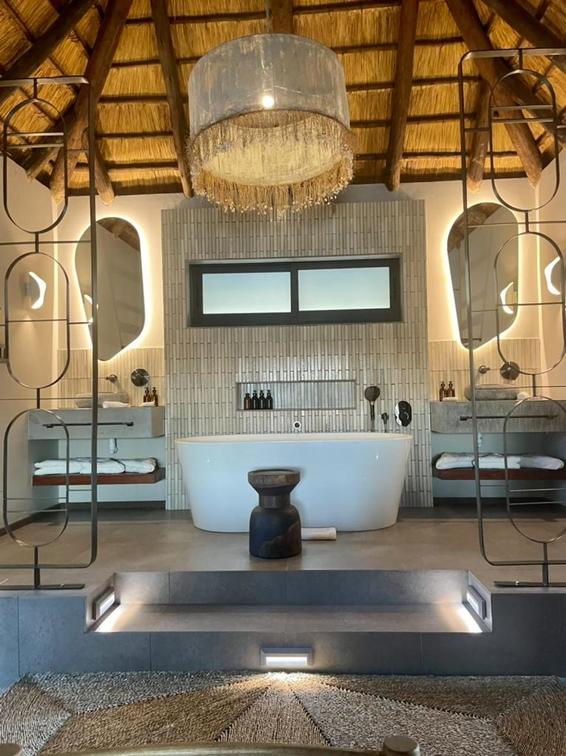 * Open-plan main bathroom en-suite with bath and interconnected indoor and outdoor rain-showers, double vanity and separate toilet