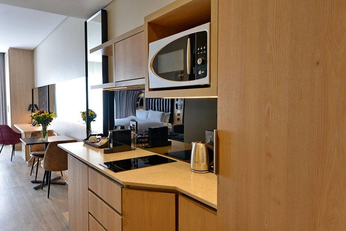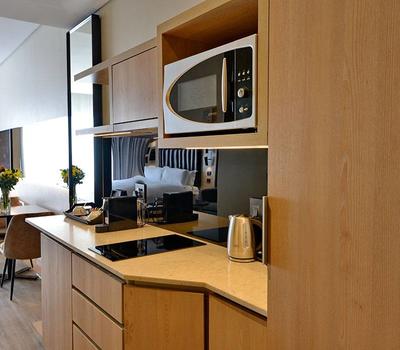 Equipped with everything you need for a relaxing longer stay, our sophisticated studio kitchenette gives you the freedom of eating out or in. Views are spectacular from North or South Facing rooms. The kitchenette is fully equipped and offers a 2-plate induction cooker with extraction hood. A mini-Bar fridge is standard in all rooms and can be stocked upon request. Each room is equipped with an iron and board for convenience. Luxurious Charlotte Rhys guest amenities complete our unique offering.