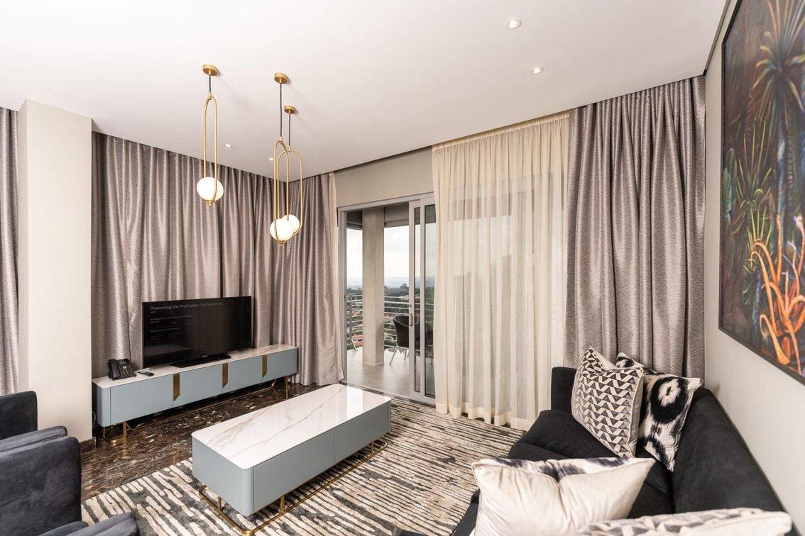 The panoramic views from the Presidential Suite on the 21st floor allow you to see forever. All modern conveniences have been catered for in this stunning 2-bedroom suite ranging from built-in kitchen to your exclusive north-facing balcony. All bedrooms are en-suite, and the open living space provides plenty of entertainment options, with a sumptuous dining room and spacious lounge. In the lounge you’ll find a large high-definition television that provides all DSTV channels as well as other current channels.