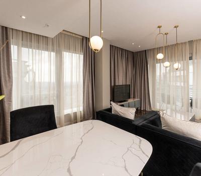 Two bedrooms and a Master bedroom (3 Bedrooms) that is sanctuary of relaxation, complete with a luxurious rain shower and a vintage-inspired oval bathtub. Indulge in the finer touches, such as a Dyson hair dryer and heated marble and wooden flooring throughout the apartment. The East Penthouse is designed to be your ultimate home away from home.