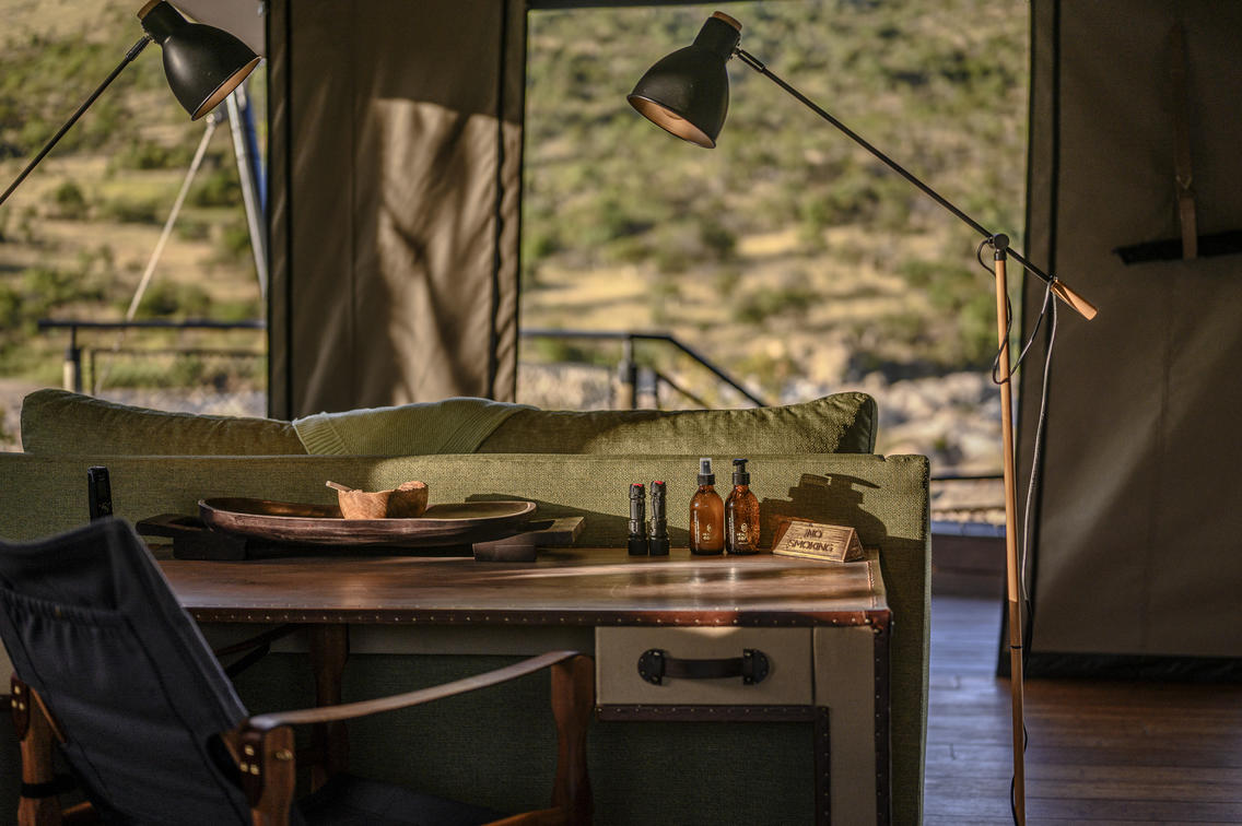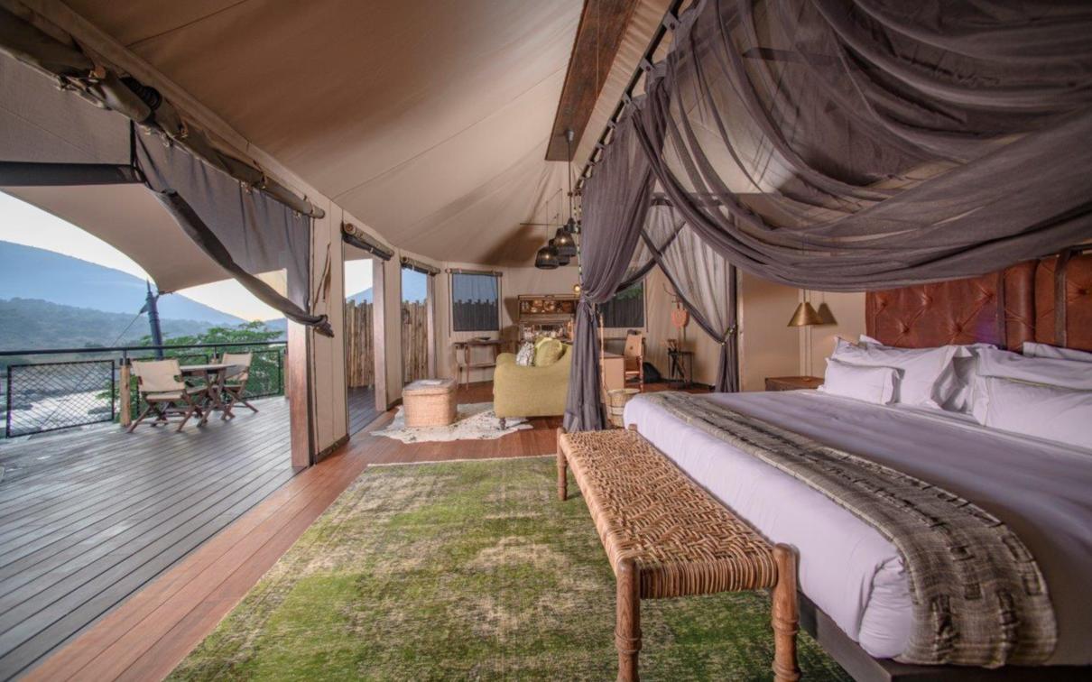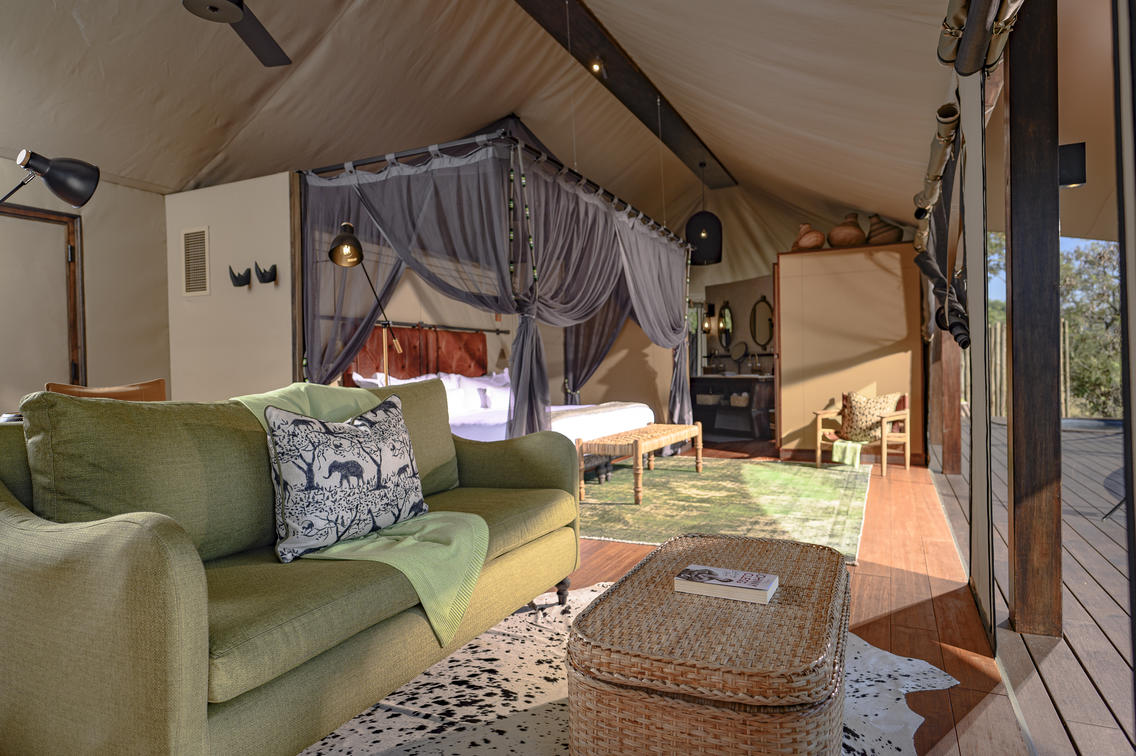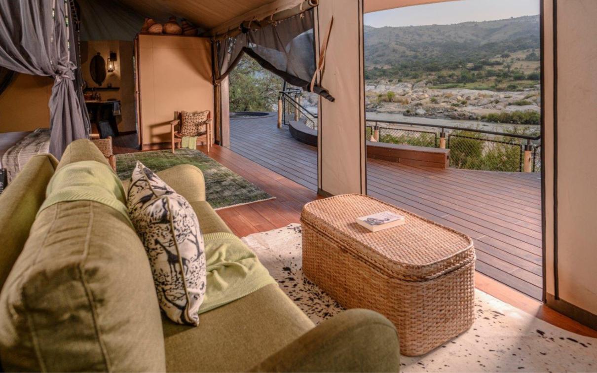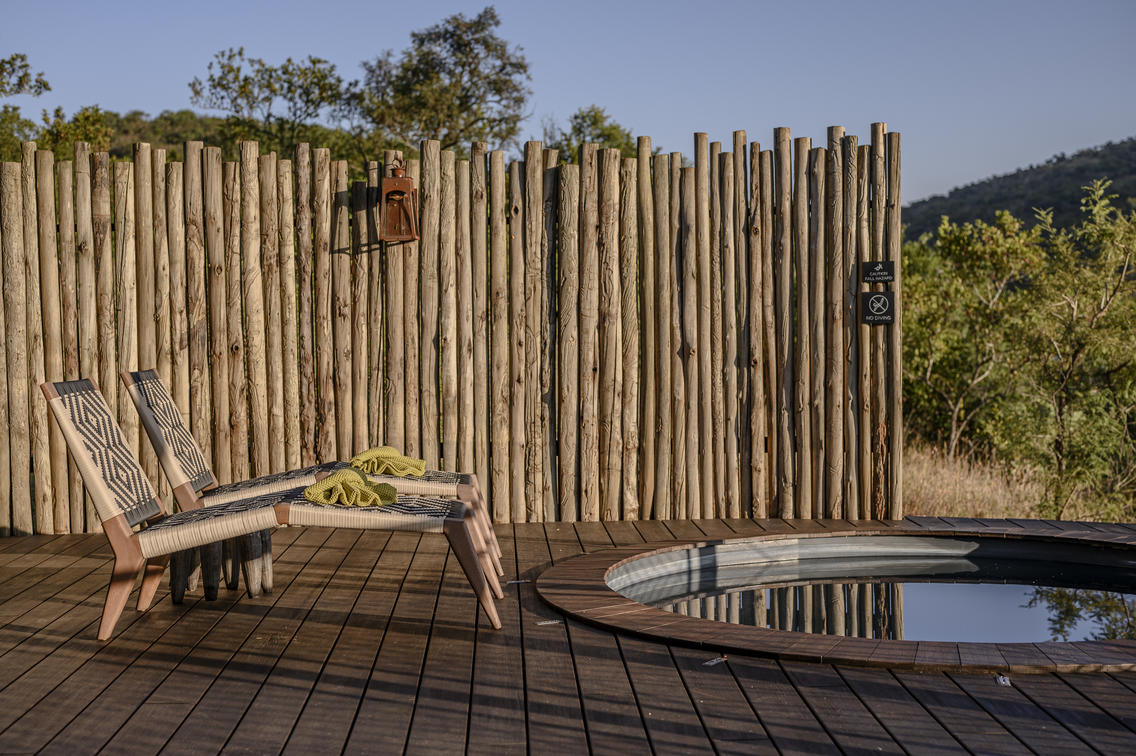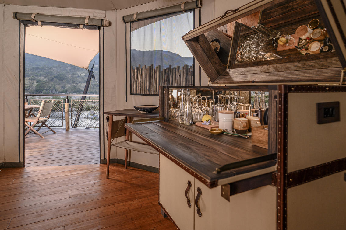 Indulge in ultimate luxury in one of the seven exquisite tents at Madwaleni River Lodge. Each tent features a private heated plunge pool, indoor and outdoor lounges with breathtaking wilderness views, and sophisticated copper bathroom fixtures. Air-conditioned rooms come equipped with iPads for seamless food and beverage orders, ensuring a comfortable stay.