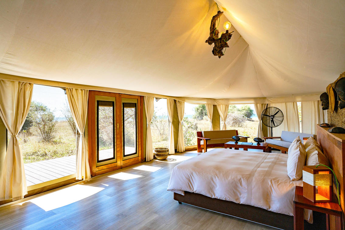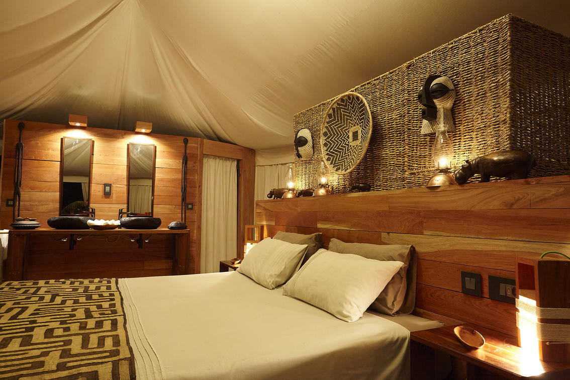 Each of our four brand new luxury tents offers you an abundance of space in which to stretch out and unwind. In the centre of this 67sqm tent is your king-size bed, made up with linen of the finest Egyptian cotton, a sanctuary from which you can marvel at the incandescent colours of the sunrise or idly watch the playful afternoon frolics of the impala and puku, utterly unaware of your presence.