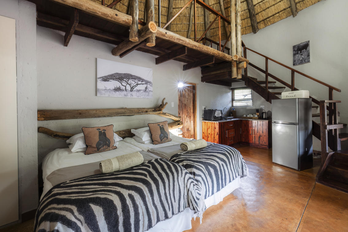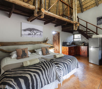 Quiet, self catering bush camp with swimming pool, Mashu Hide, function Facilities. 8 spacious en suite cottages with shower , bath, basin and toilet. All cottages have aircon. 7 cottages sleep 4 with 2 in a loft, have open kitchenette, tea station and private braai. One 2-sleeper has tea station only.