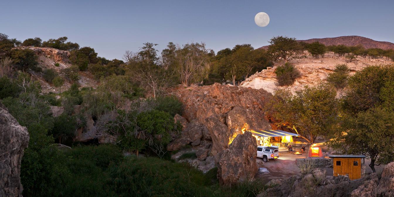 Upon arrival at the campsite the guest will receive a warm welcome from Ongongo staff and can enjoy the area, take a walk around the canyon or swim in the natural pool. The Ongongo Team arrives at 16h00 to pitch the tents, ready the campsite and put up the kitchen. Campfire starts at 18H00. Dinner will be served between 19H00 and 19H30 depending on the clients preference. Breakfast will be anytime from 7H00-9H30 in the morning.