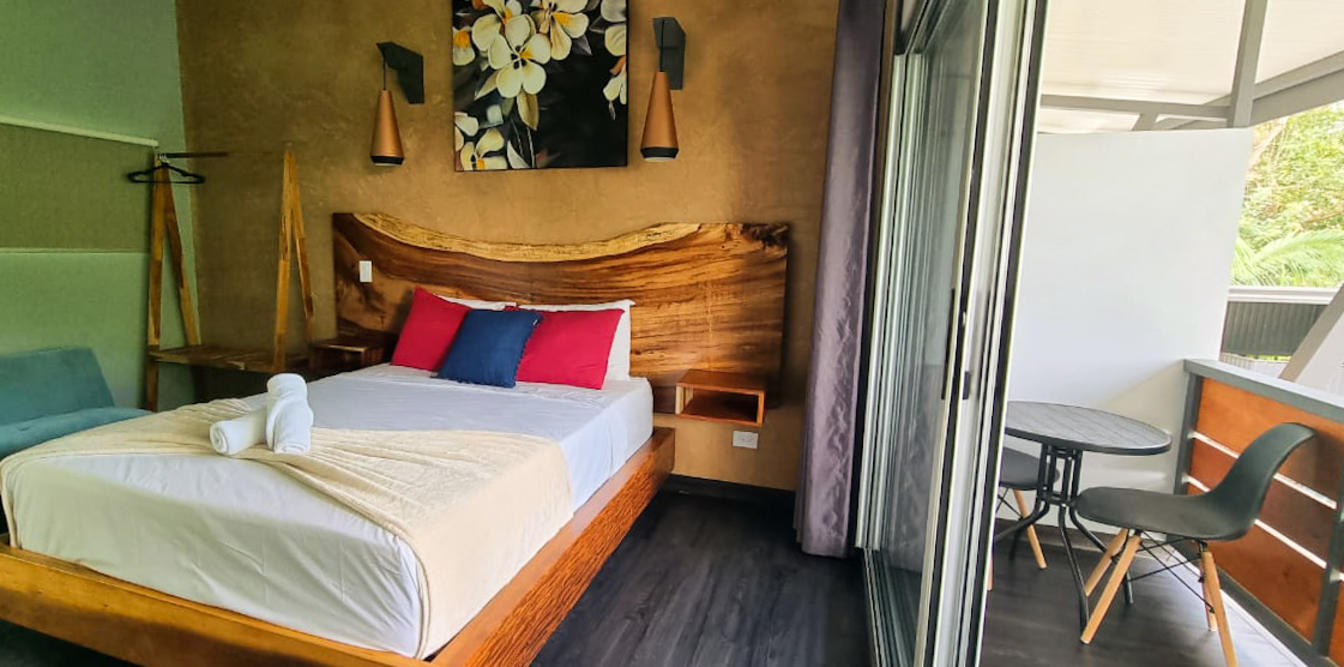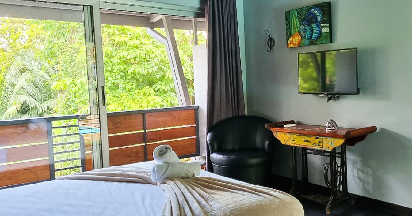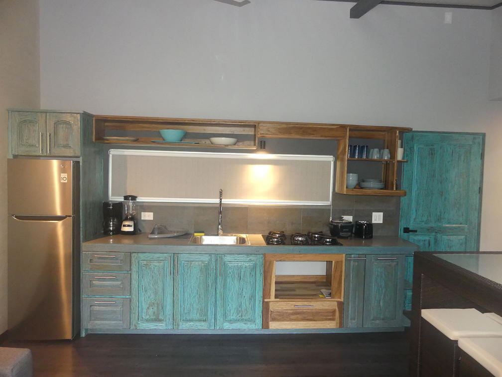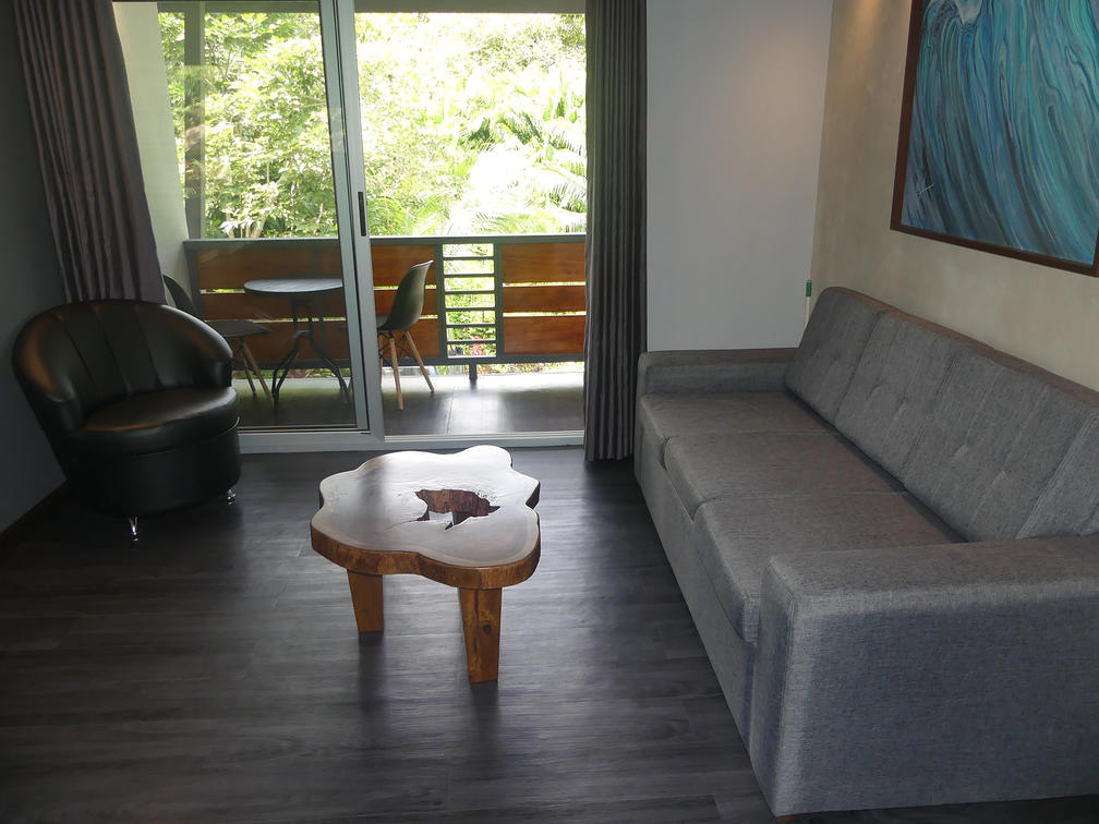 It has a queen bed, air conditioning, TV, balcony. Fully equipped kitchen, dining room and a small living room with armchair.