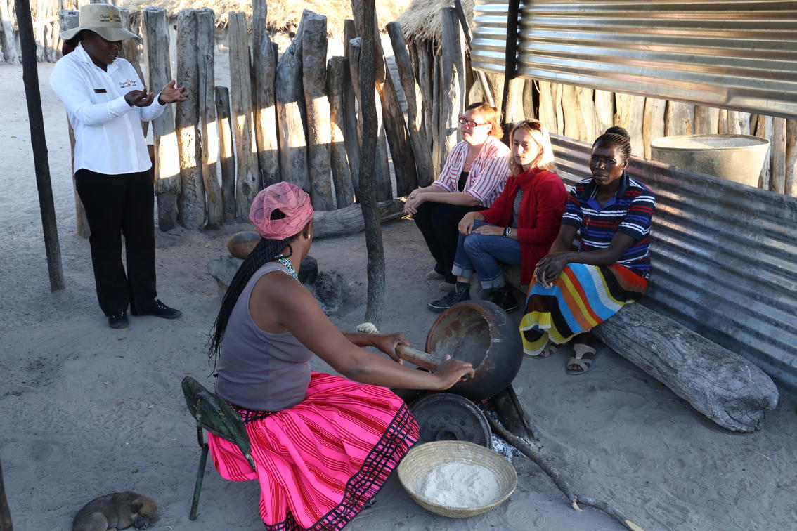 Mahangu (Pear millet) – The staple food of the Owambo people; used in their traditional food and drinks – take part in the pounding of Mahangu
