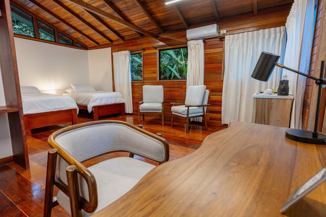 Each cabin is designed for optimum comfort and style, blending seamlessly with the natural surroundings while offering modern amenities for a comfortable stay. Whether you're lounging on the veranda, soaking in the sights and sounds of the rainforest, or embarking on an exciting jungle adventure, our Canopy Family Rooms offer the perfect setting for unforgettable family memories. Book now and experience the magic of Minga Lodge & Reserve with your loved ones!