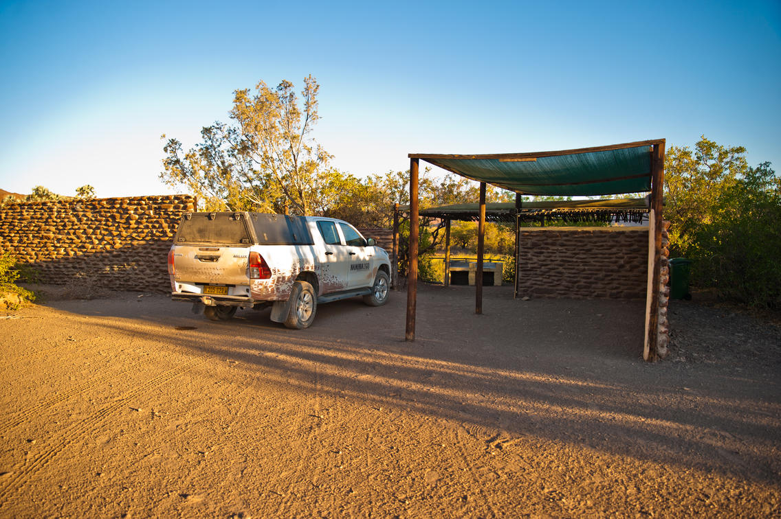 Most campsites are situated next to the riverbed with splendid views. Each one has a power point, a light, wash basin and a fire place. The communal ablution facilities provide hot water showers. Breakfast excluded.