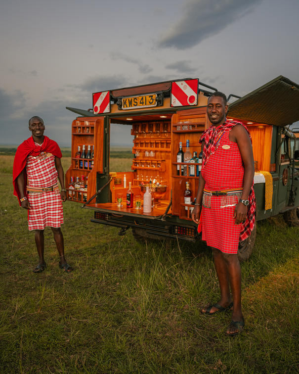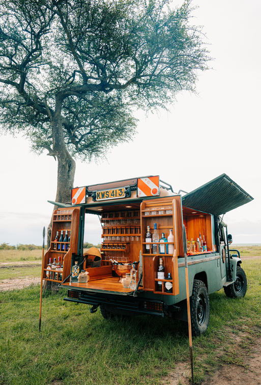 A customized safari cruiser, transformed into a mobile bar for unforgettable sunset experiences in the wild. Outfitted with a fully stocked wooden bar, glass racks, and ambient lighting, it offers a luxurious yet rustic setting ideal for enjoying drinks and snacks after an adventurous day. Hosted by local guides who add authentic charm to the experience. Perfect for scenic toasts and storytelling under the African sky.