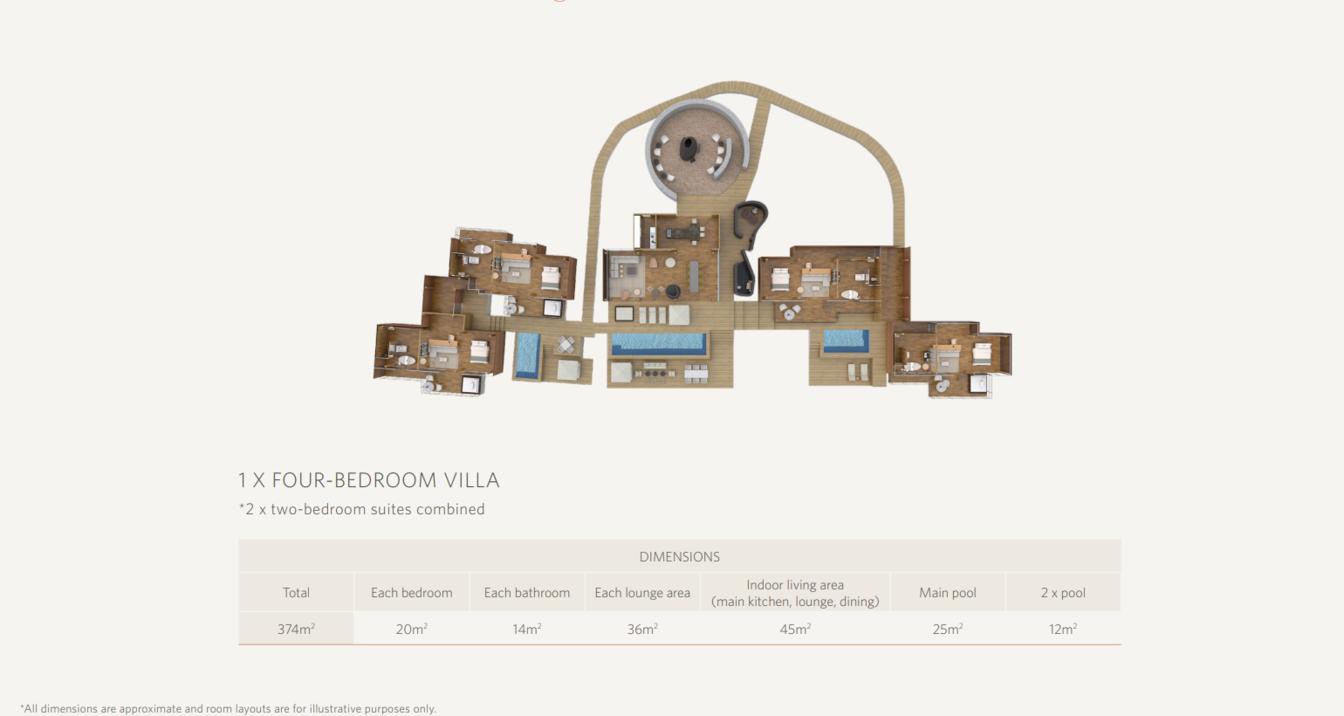 2 two-bedroom suites with own pool, entertainment and dining area, villa pool, private turning circle and boma.