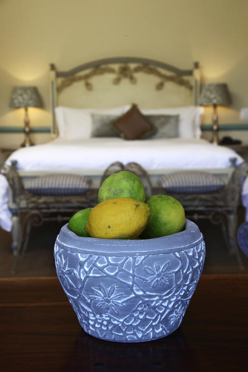 The spacious air-conditioned bedroom and picturesque bathroom features a stand-alone bath, separate shower, bidet and double basins with granite tops. Music in the bathroom and underfloor heating throughout completes the experience of luxury and indulgence. Each villa has 2 private balconies, one with outdoor seating.