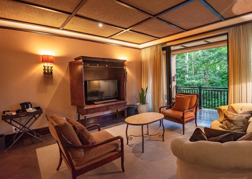 Each of these units includes a king-size bed, a walk-in change area with a separate bathroom, tea and coffee-making facilities, a bar fridge, a television, and a hairdryer. Ceiling-to-floor sliding doors open out onto a private balcony where you can take a fresh cup of coffee and ask up the joyous cheer birdsong.