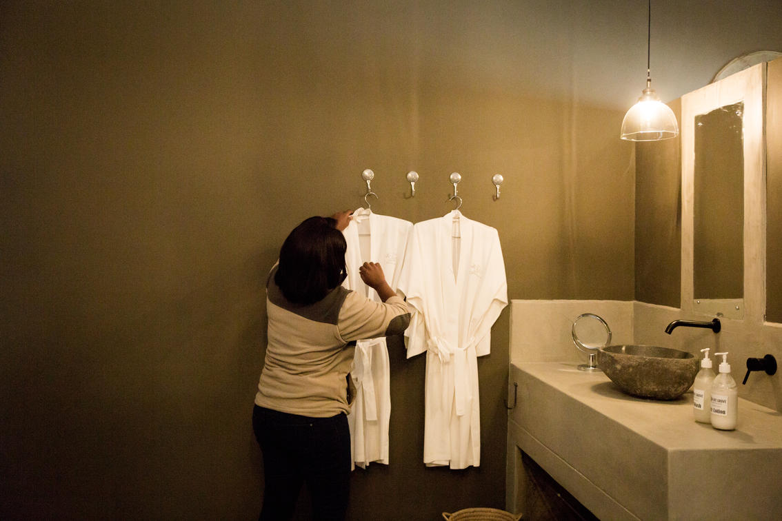 Egyptian cotton bed linen & kimonos, and down duvets.