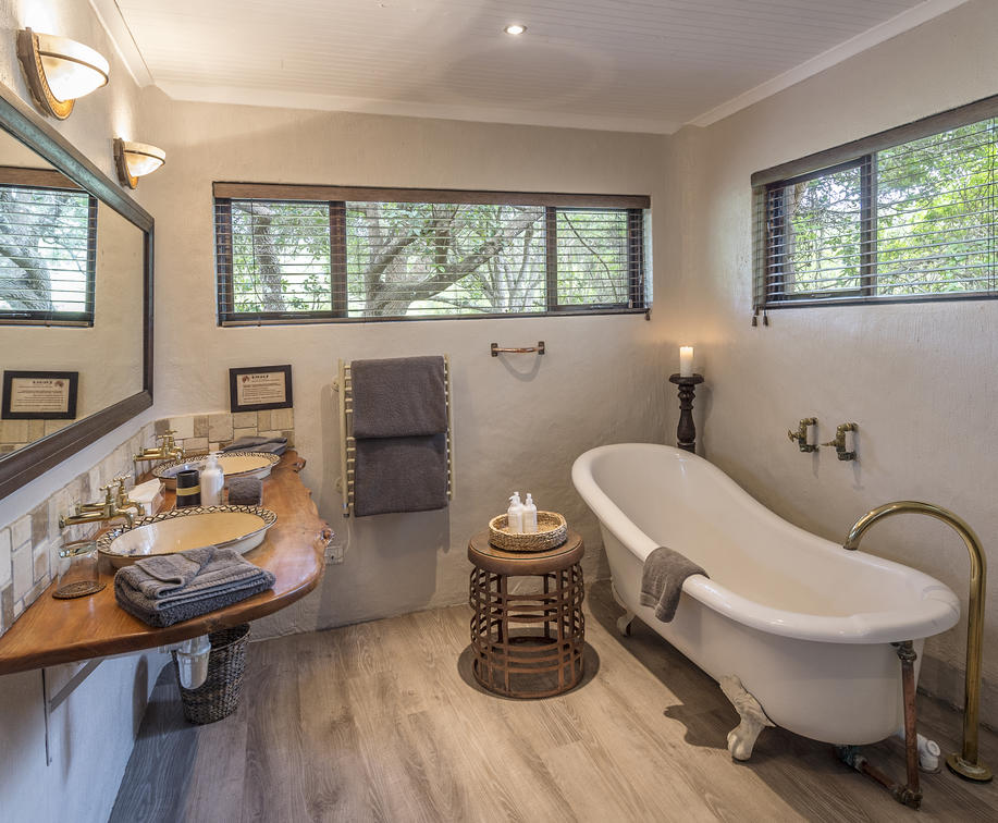 Superbly appointed spacious, air-conditioned thatched suite at 4 star lodge on the banks of the Bushmans River. Diverse river activities. Rate includes all meals, selected beverages, game drives and activities.