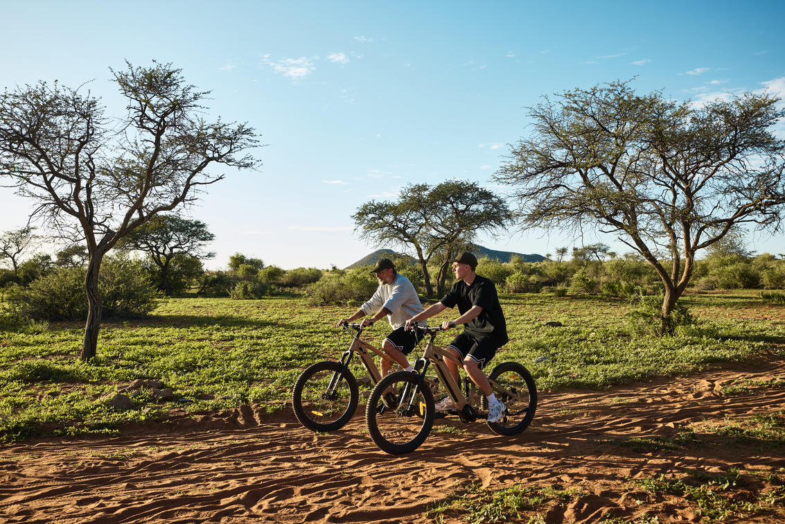 E-biking is an easy alternative to a hike and allows guests to enjoy the landscape at a leisurely pace. Our e-bikes are designed in Namibia and made for the African terrain. The bikes are battery-powered and propelled forward by a motor.