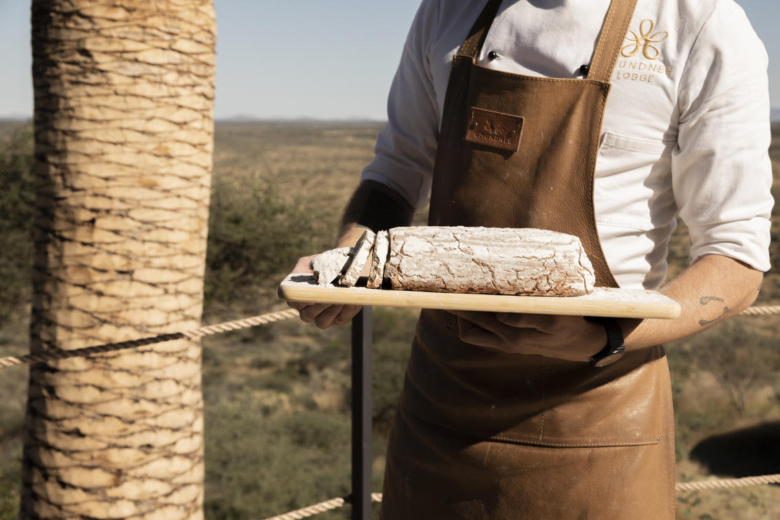 Upon request, lodge guests can enjoy a unique "fine dining experience": lunch or dinner in the wilderness. The Gmundner team sets up tables at stunning hidden spots or transports guests for a sundowner on the highest mountain in the area, where the Lodge's team arranges a fully equipped bar and snacks. All of this is served on the beautiful dinnerware from the Gmundner Ceramics' African Collection.