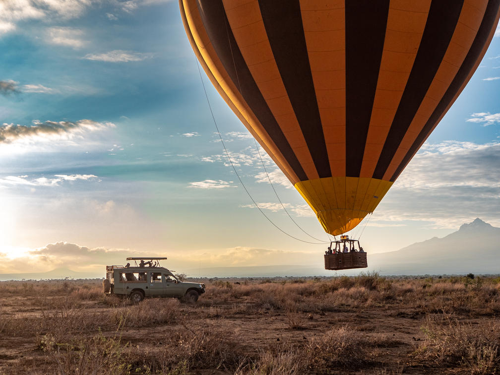 Admire Mount Kilimanjaro at eye-level and the Amboseli ecosytem from above on a hot-air balloon safari. From up here, you can see wildlife traversing the plains below and gain a deeper understanding of the interconnectedness between Amboseli National Park and its surrounding communities. (Additional costs apply; please enquire for more information.)