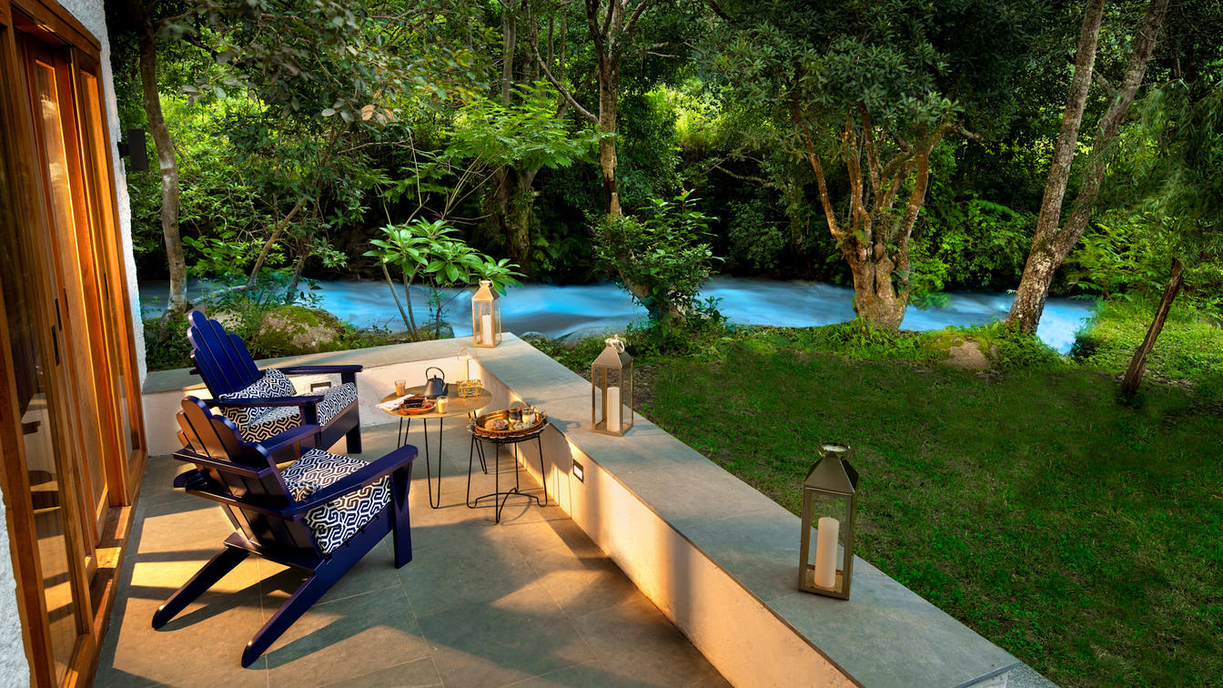 Set along a peaceful perennial stream with unrivalled Himalayan views, the exclusive one-bedroom River Suite is designed for couples. Comprising two levels, the suite’s ground floor hosts a spacious lounge and dining area while upstairs boasts a lavish bedroom with an open ensuite bathroom. A private hot tub and outdoor verandah complete the space.