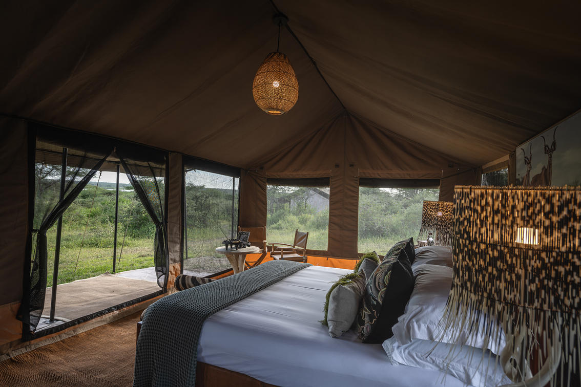 The camp location in the Ndutu offers breathtaking views of the vast Savannah, untouched wilderness, and