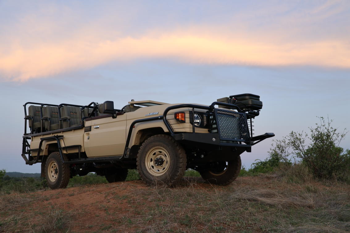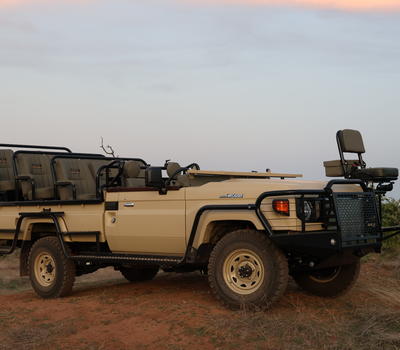 Our open safari vehicle is designed for comfort and excellent visibility, featuring heated seats, individual charging ports, and soft blankets for early mornings and cooler afternoons. A stocked coolerbox is brought along on each drive, ensuring guests have refreshments available throughout the safari. Drives are led by our highly experienced Head Ranger, who shares expert knowledge on animal behaviour, tracking, plant species and the ecological relationships that define this remarkable reserve.