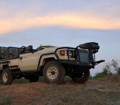 Morning drives depart at first light, when predators are most active and the bush is alive with movement. Afternoon drives extend into early evening, offering golden-hour sightings and breathtaking sunsets before returning to the lodge.