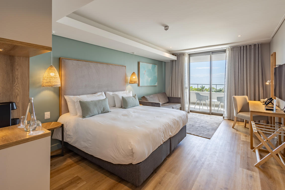 Step into our elegantly crafted Luxury Sea-Facing Suite, featuring a private balcony that offers breathtaking ocean views. Immerse yourself in unparalleled comfort and style, where every detail is designed to enhance your stay. The private ensuite bathroom features a walk-in shower, toilet, wash basin, and bathroom amenities. Unwind on the cozy couch or stay productive at the thoughtfully provided writing desk and chair. Modern amenities include Wi-Fi, coffee making facilities, a TV, and hot/cold air conditioning.