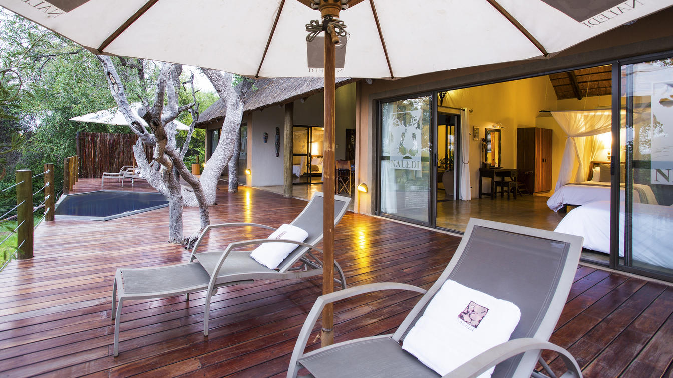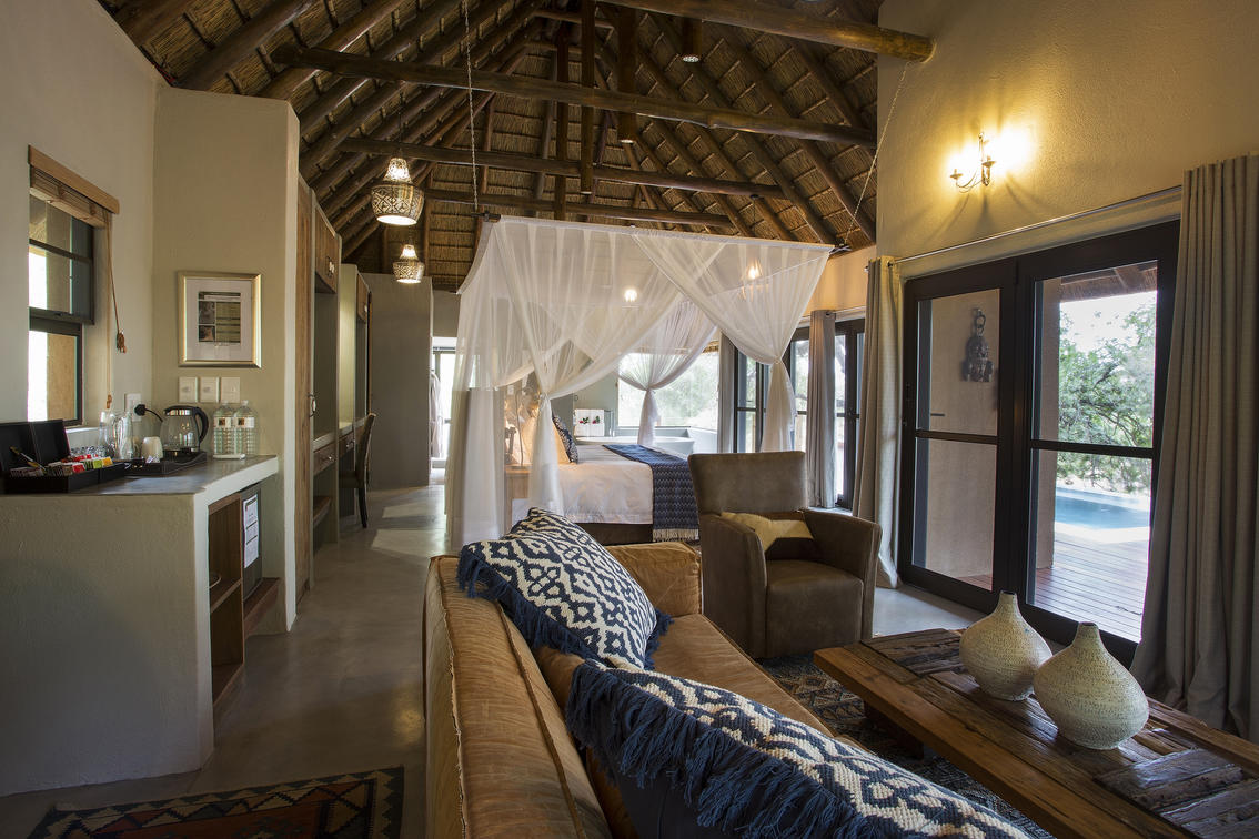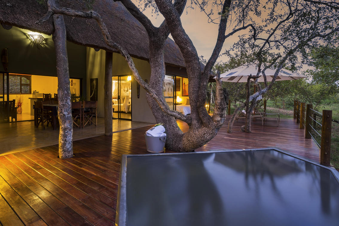 Leadwood is made up of two suites each with its own bathroom en suite. The two suites share a lounge, covered patio, and private deck with its own private splash pool overlooking a waterhole.