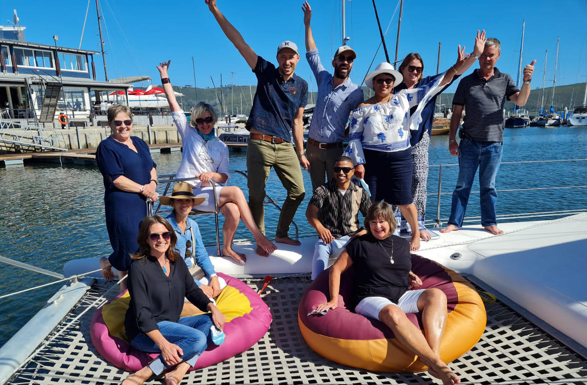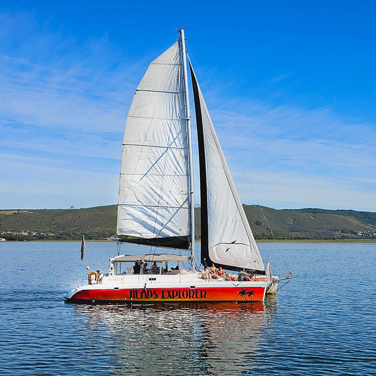 We sail out on the Knysna lagoon, explore the heads and then drop anchor at the beautiful turquoise Featherbed bay where we have lunch, swim and enjoy a day out in nature and the sunshine.