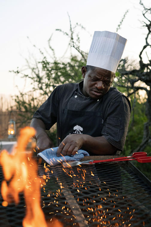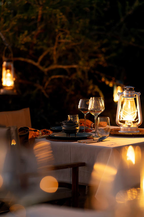 Simple, wholesome meals are cooked by the chef over the campfire and taken either in the well-appointed mess tent or al fresco under a Jacketplum tree. A bar in the mess tent stocks a variety of chilled drinks as well as tea, coffee and Amarula hot chocolate.