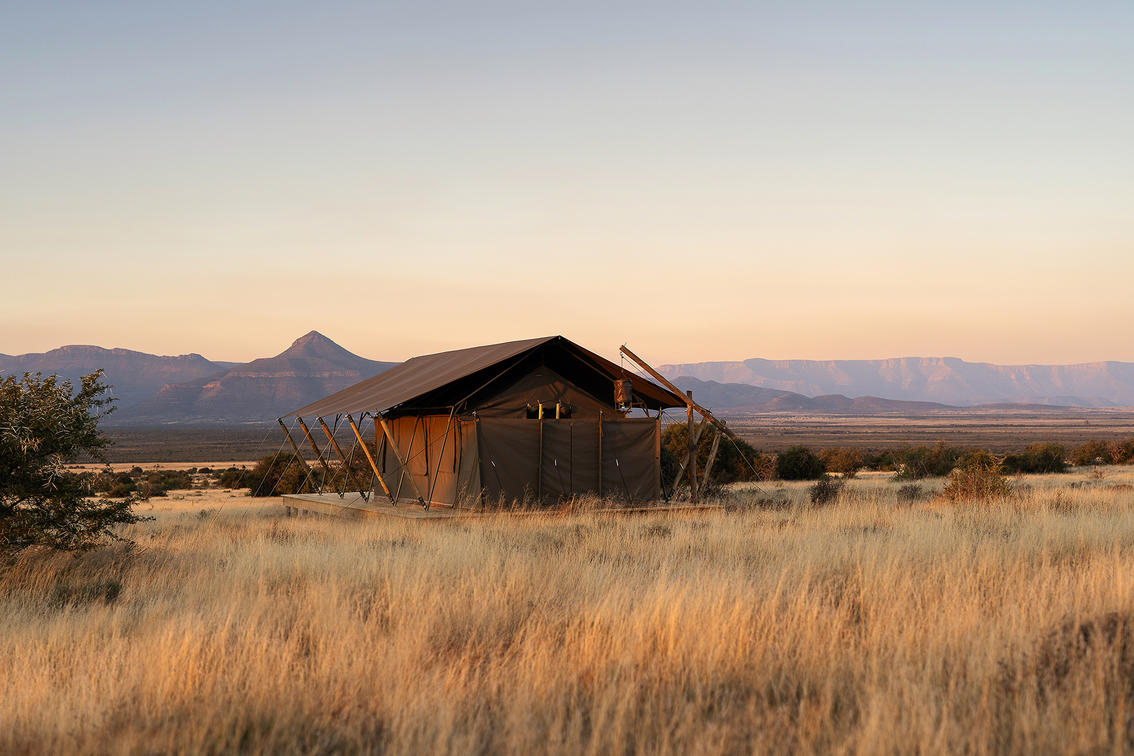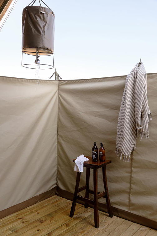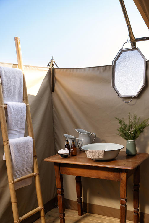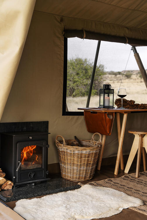 Four deluxe guest tents are positioned to enjoy spectacular undisturbed mountain views, providing a tranquil sanctuary to return to after a long day of exploring. There's nothing quite like "champagne air" to make for a restful night's sleep! Tastefully furnished with all the essentials, the intimate bedroom and seating area are warmed by a small fireplace in winter and cooled by a fan in summer. A simple en-suite bathroom at the back of the tent contains an indoor loo, a washbasin and a separate open-air "bucket" shower - filled from the outside with hot water on request.