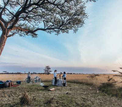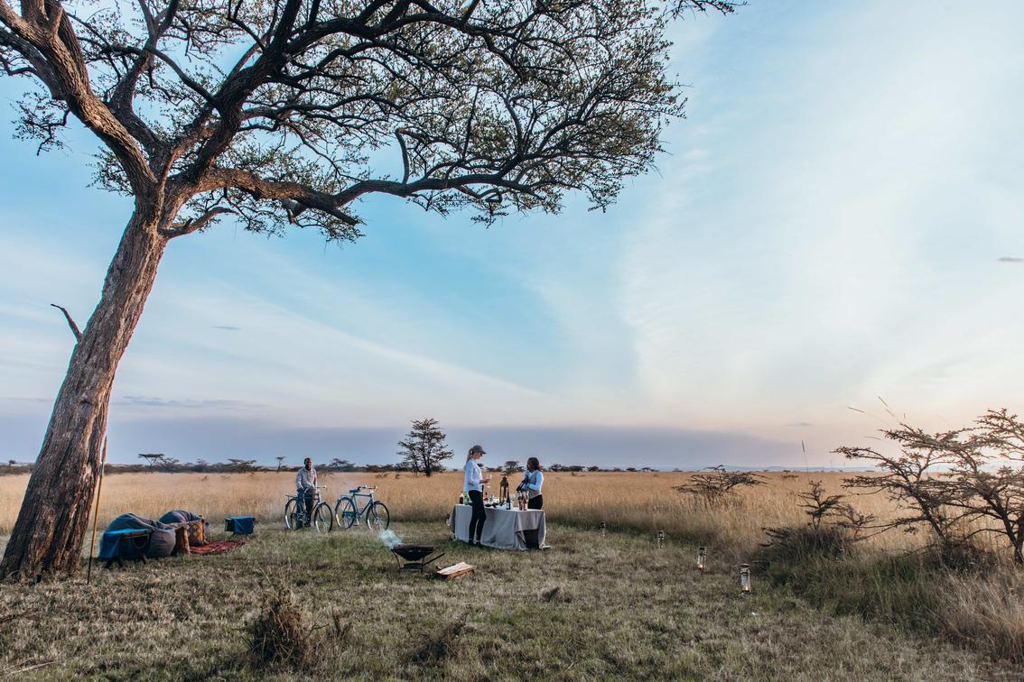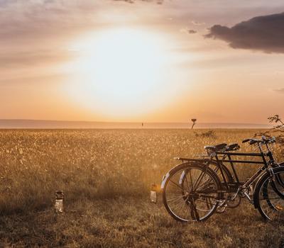 Mara Expedition Camp offers guests a guided bicycle experience to exercise after their morning safari drives. The riding takes place on open plains and the landing strip.