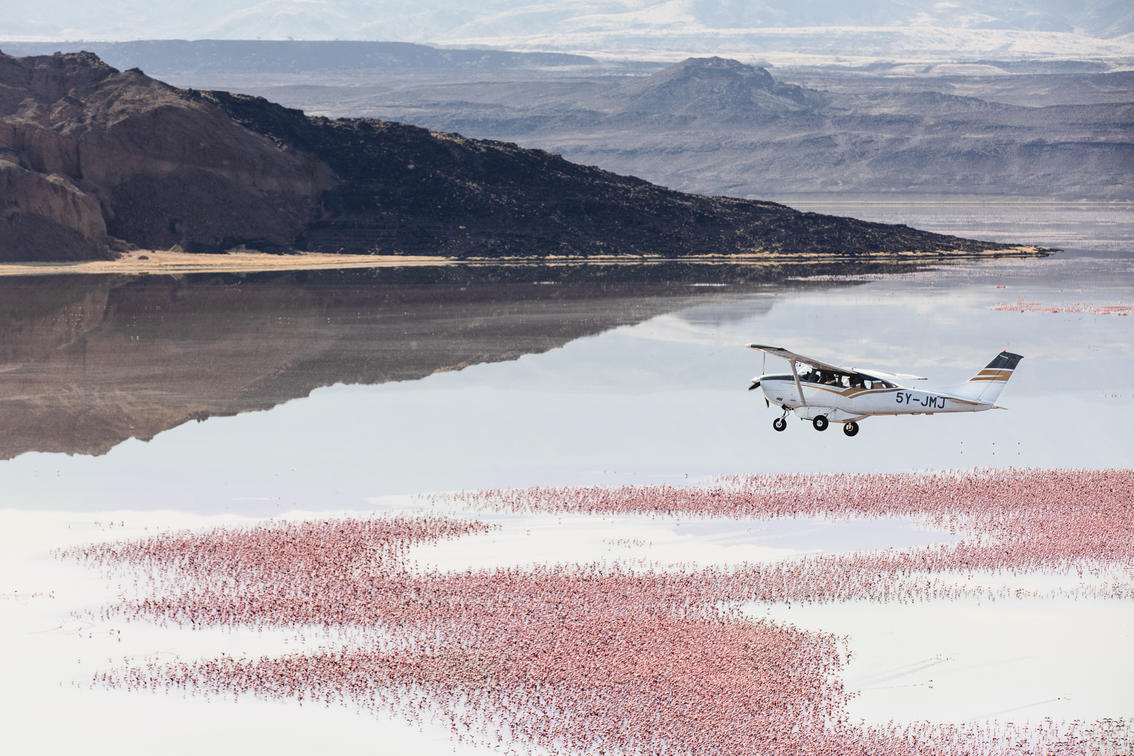 Depart at first light on a journey few have ever experienced! Get ready for one of the most spectacular and unique views of this unexplored part of Africa. You will fly over extinct volcanoes, crocodile breeding grounds, unique rock formations, desert dunes and have the chance to witness thousands of flamingos in flight over Lake Logipi. After exploring this amazing desert region you will fly over the southern end of Lake Turkana, the world's largest desert lake also known as the Cradle of Mankind. You will then land at a remote airstrip and enjoy a bush breakfast under the shade of an Acacia tree before flying back to Lewa Wilderness.