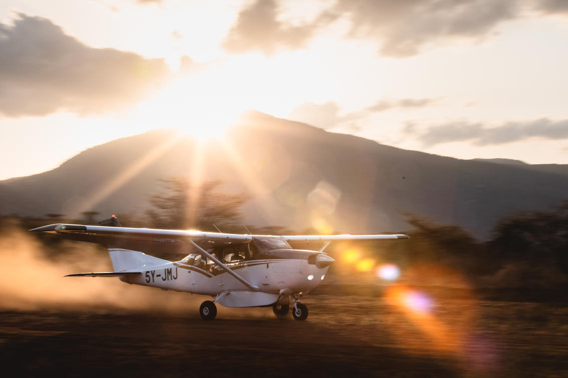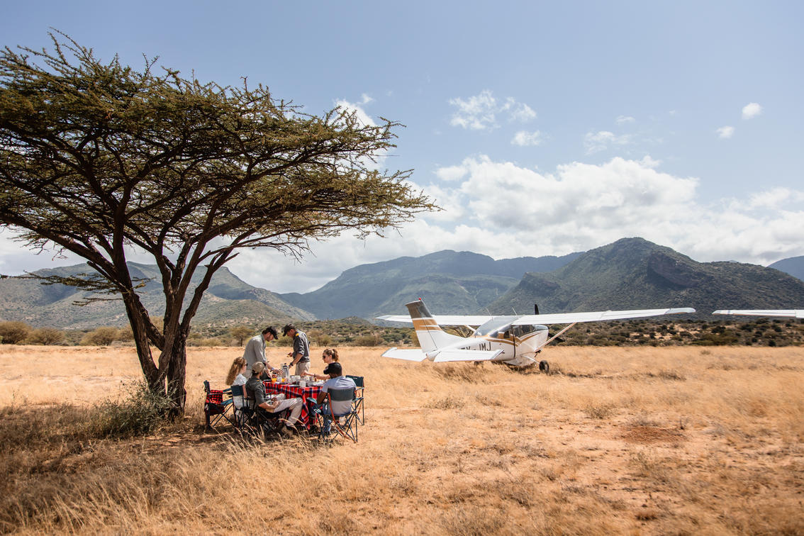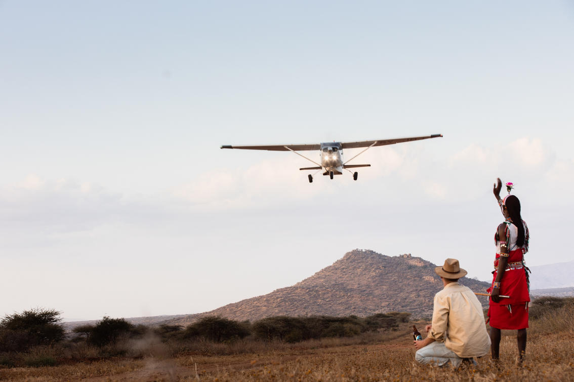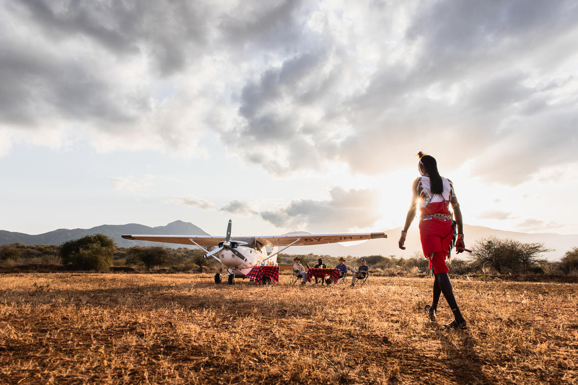 Experience the magic of an early morning or late afternoon flight, gliding low over the valleys and ridges north of Lewa along the winding Ewaso Ng’iro River. Marvel at the vibrant daily life of the Samburu people below and spot majestic elephants gathering along the riverbanks. Your flight will touch down at a secluded bush airstrip, where sunrise guests are treated to freshly brewed coffee and a light breakfast, while sunset travelers unwind with a refreshing sundowner and snacks. After approximately 45 minutes on the ground soaking in the atmosphere, you’ll be flown back to your lodge, completing an unforgettable journey filled with breathtaking landscapes, wildlife encounters, and cultural insight.