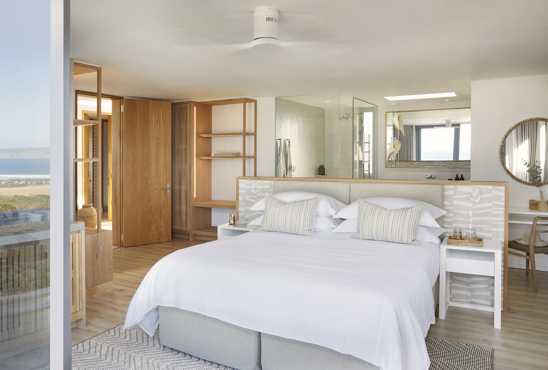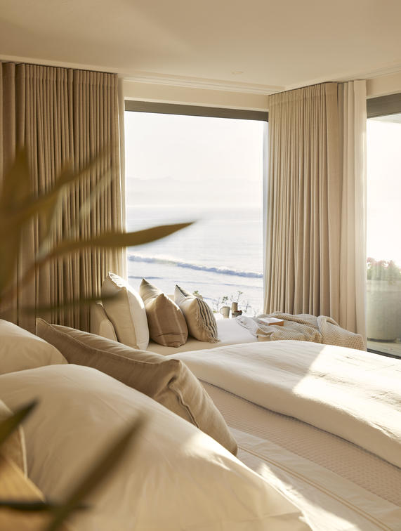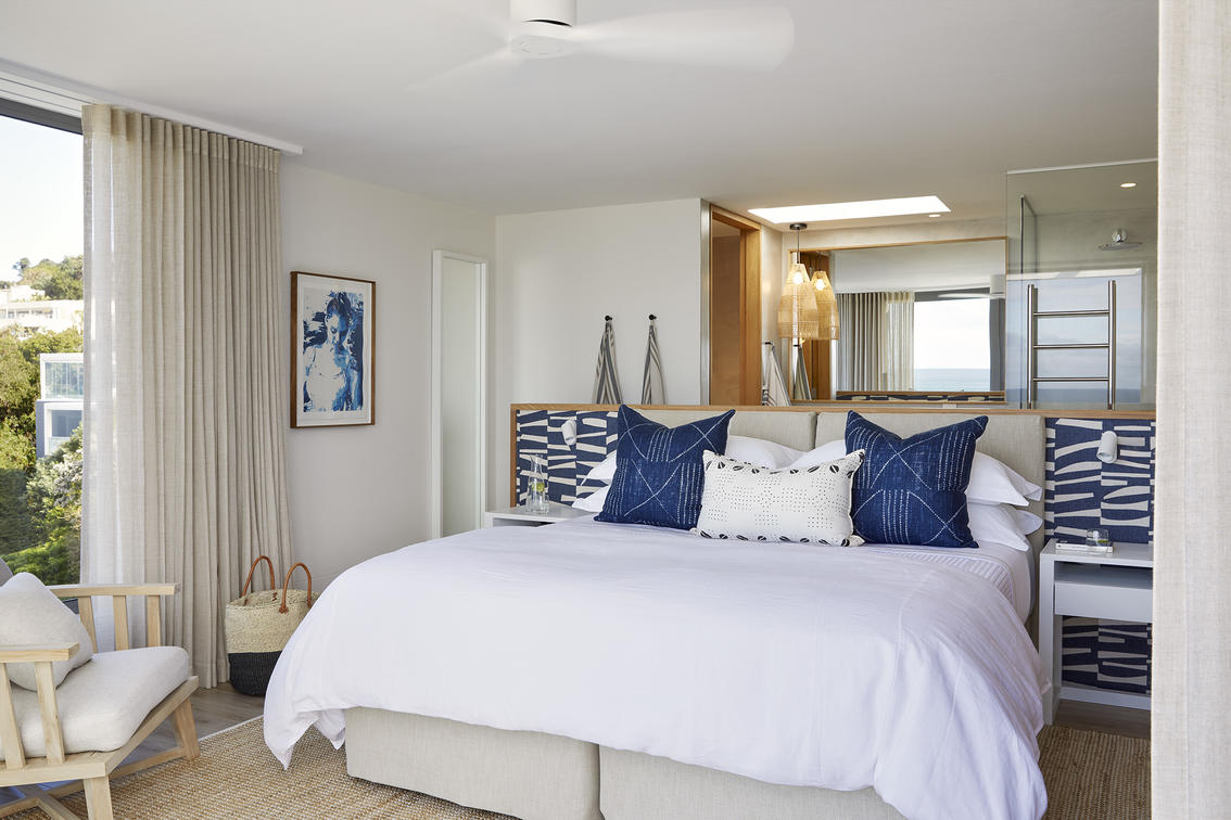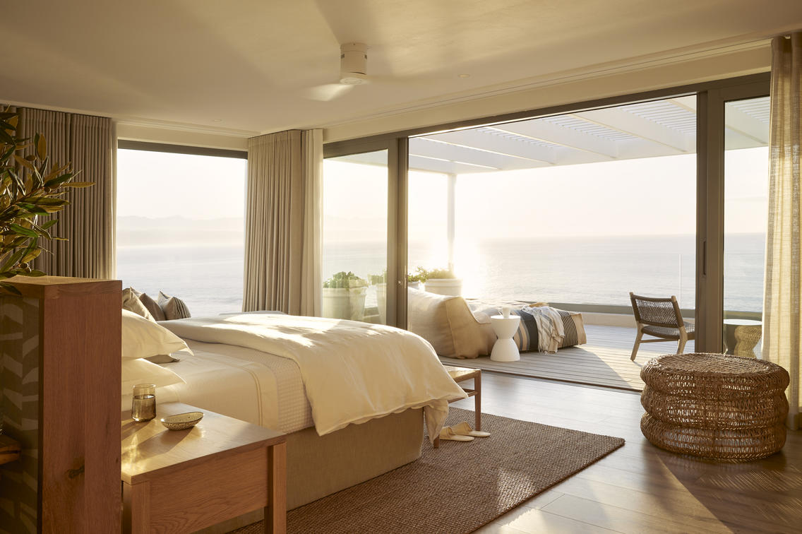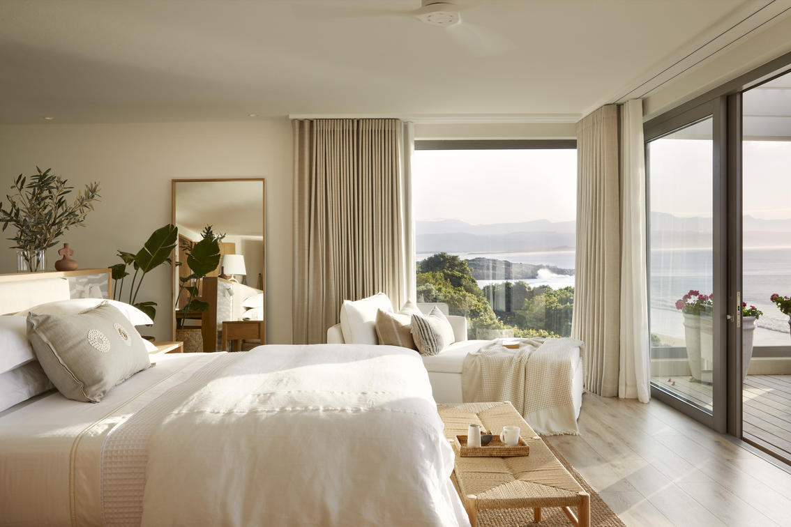 Exquisite large sea facing room with uninterrupted sea views, private deck with daybed, double vanity, bath and shower.