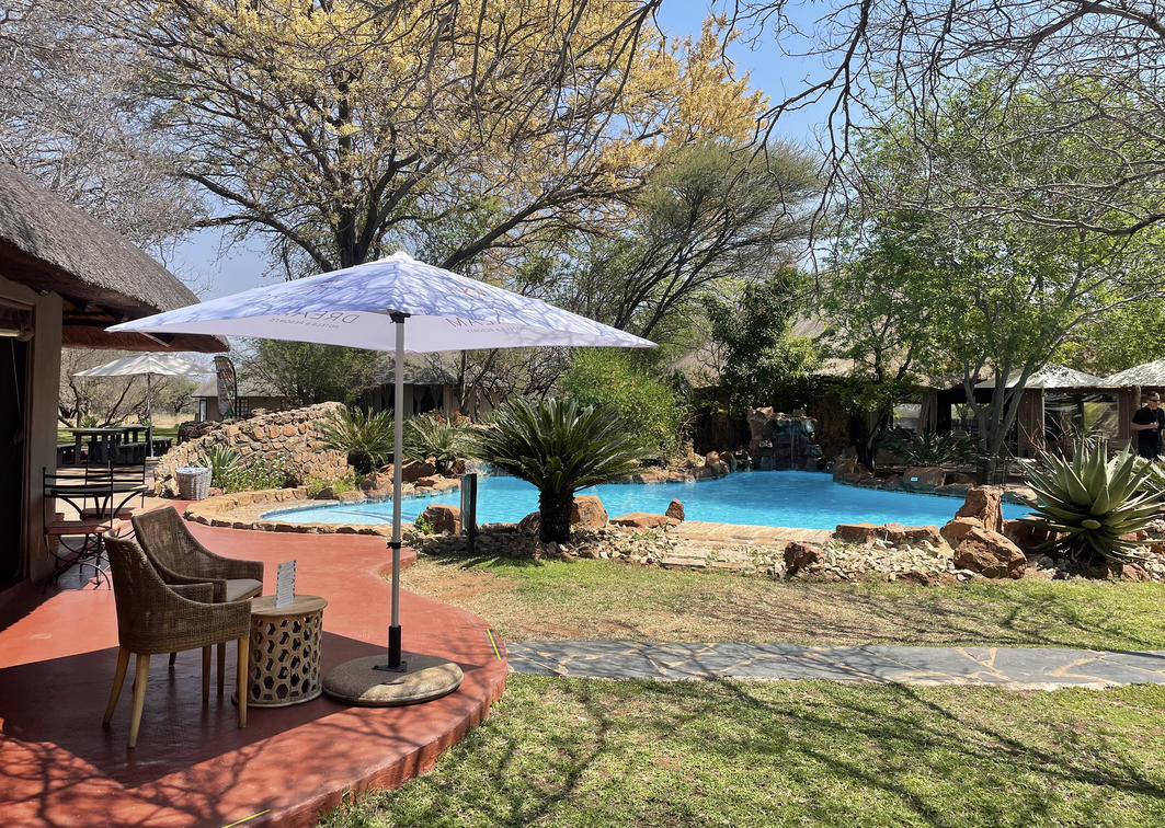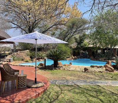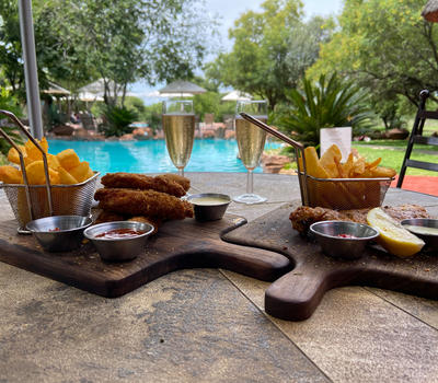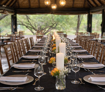 Discover Finfoot Restaurant, a stunning open-air dining experience that boasts charming wooden furnishings and a spacious layout. Nestled next to the inviting pool deck, it features a nearby lapa where guests can unwind and savour refreshing drinks around a cosy fire pit. Join us for a delightful atmosphere that enhances every meal!