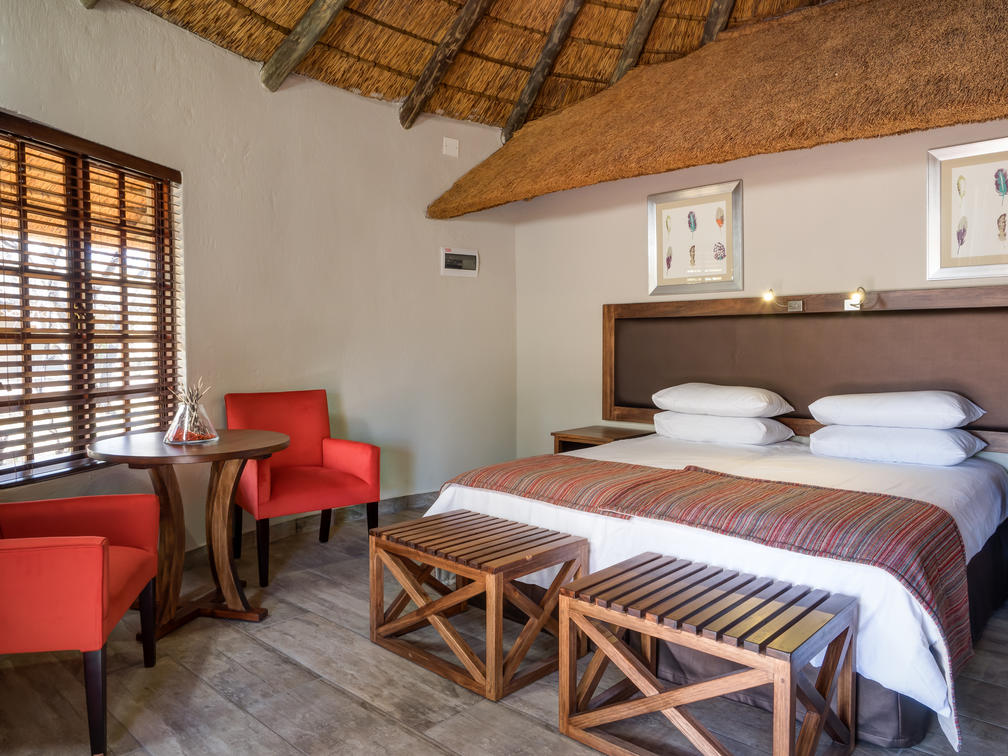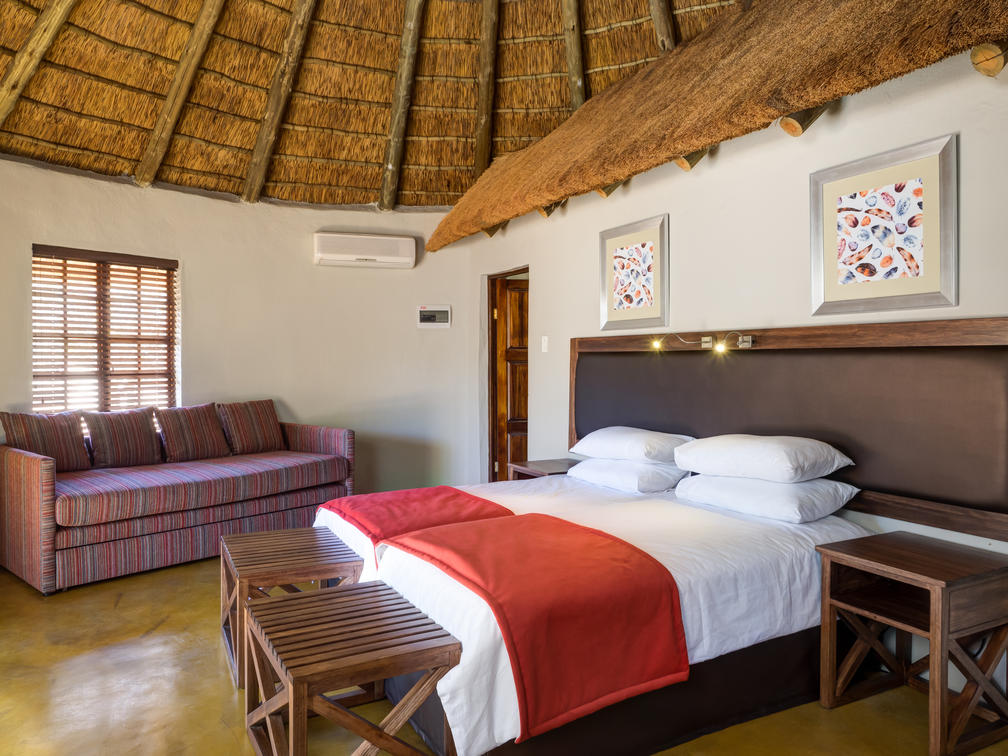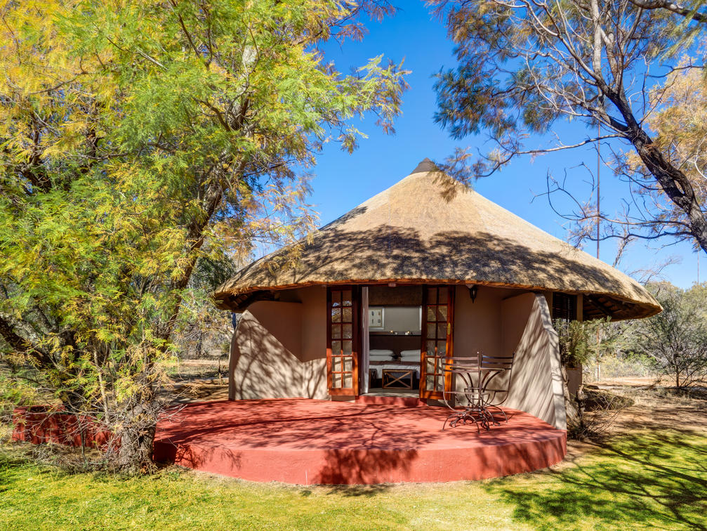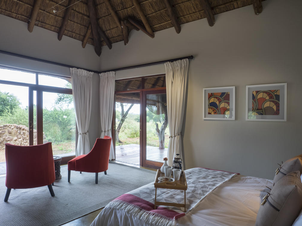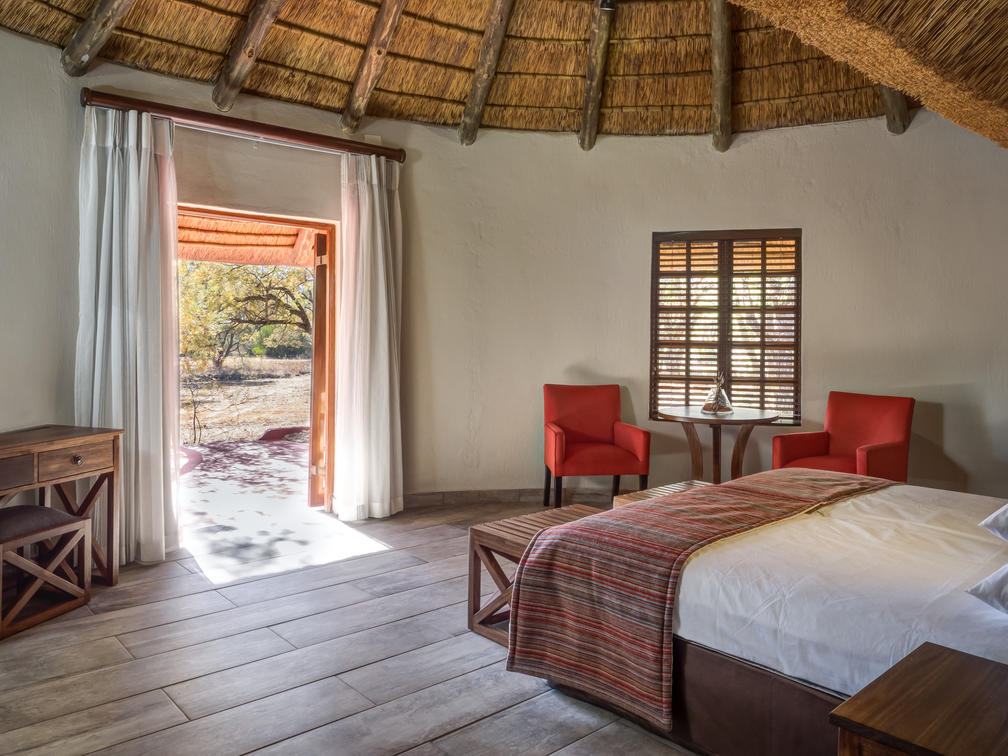 Each bush chalet consists of 2 twin beds that can be combined as a king-size bed and two ensuite bathrooms equipped with a bath and a shower