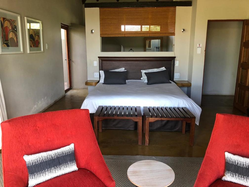 Finfoot Lake Reserve offers 18 chalets each accommodating two guests in king-size or twin beds. The furnishings are stylish and comfortable with wooden furniture and earthy tones. Each chalet comes with ample storage space, a dressing table and an en-suite bathroom with a shower. Air conditioning is provided indoors, while outdoor seating offers views over the surrounding bush.