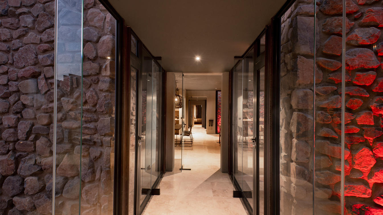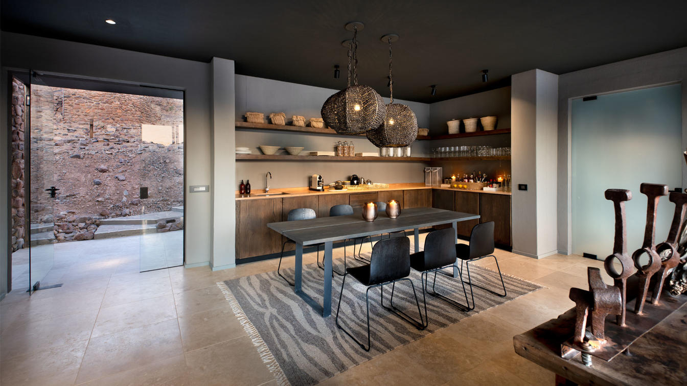 Designed to capture the splendor and solitude of the desert, just ten stone and glass suites spread out along the curve of the escarpment, allowing absolute privacy. Each air conditioned glass-fronted suite is designed to complement the expansive views of the different habitats, perfectly framed from the spacious internal areas. Featuring a private veranda, bedroom with retractable skylights for in-bed star-gazing, a living room with a fireplace, an ensuite bathroom with a glass-encased rain shower offering 180º views, and a perfectly-positioned private plunge pool for some sublime respite after a long day in the desert heat.