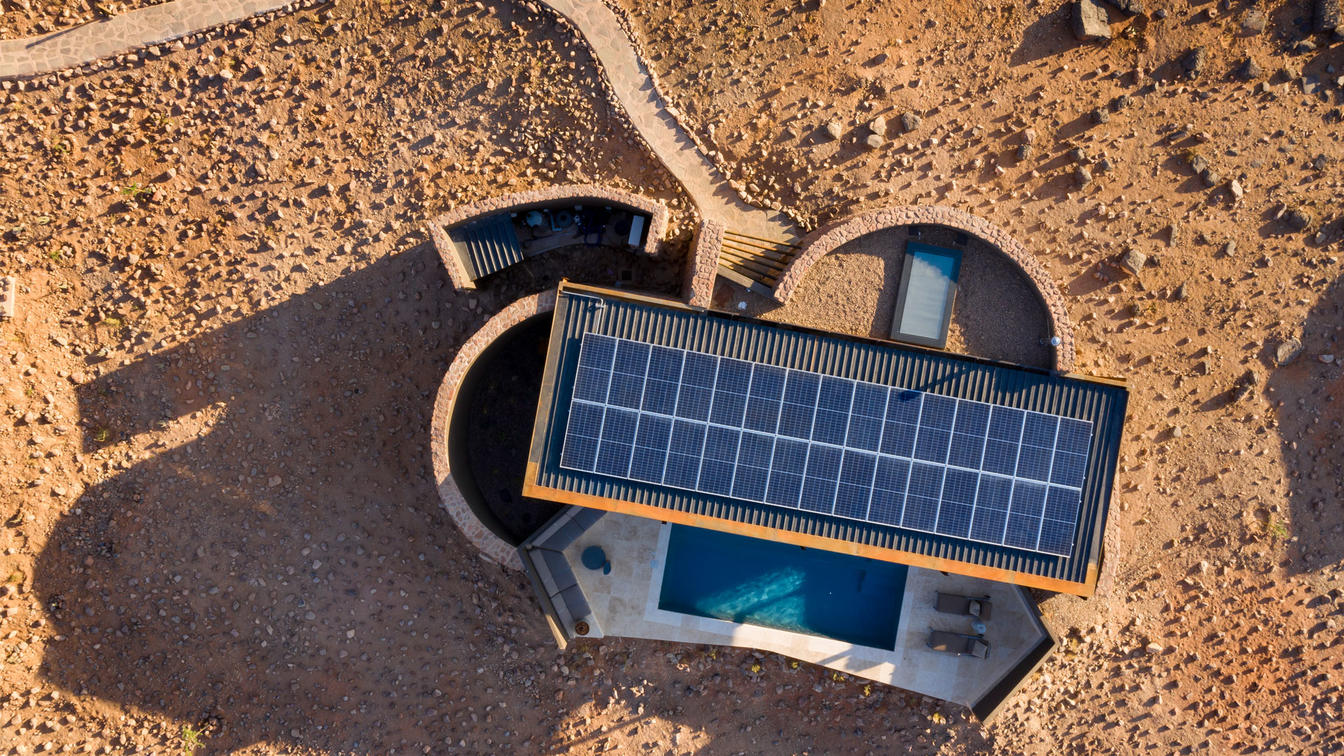 All suites include star-viewing skylights, discrete music systems and customised personal bars. One of the most innovative features of the accommodation design is the way in which the extremes of the natural environment are harnessed to create energy and recycle waste water. Each suite is like its own solar power plant, producing enough energy to not only power the air conditioning, and all the super-comforts of a luxury lodge, but also the water treatment and recycling systems.