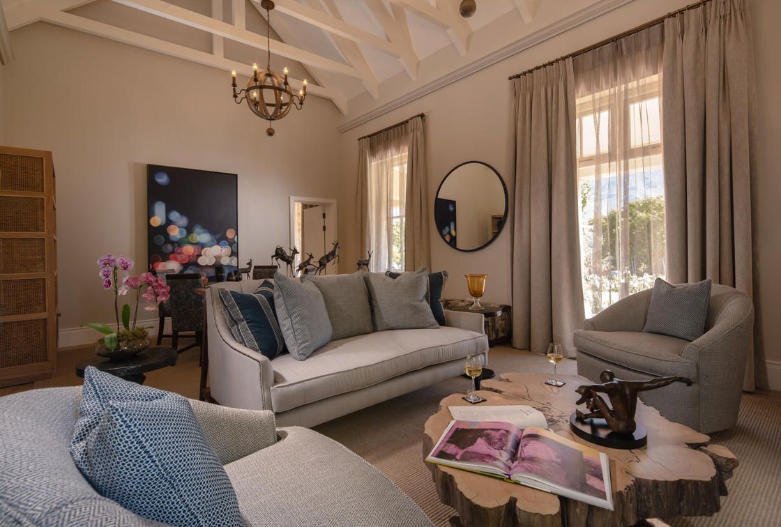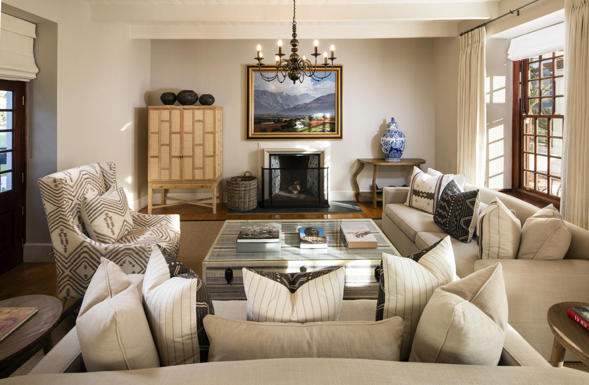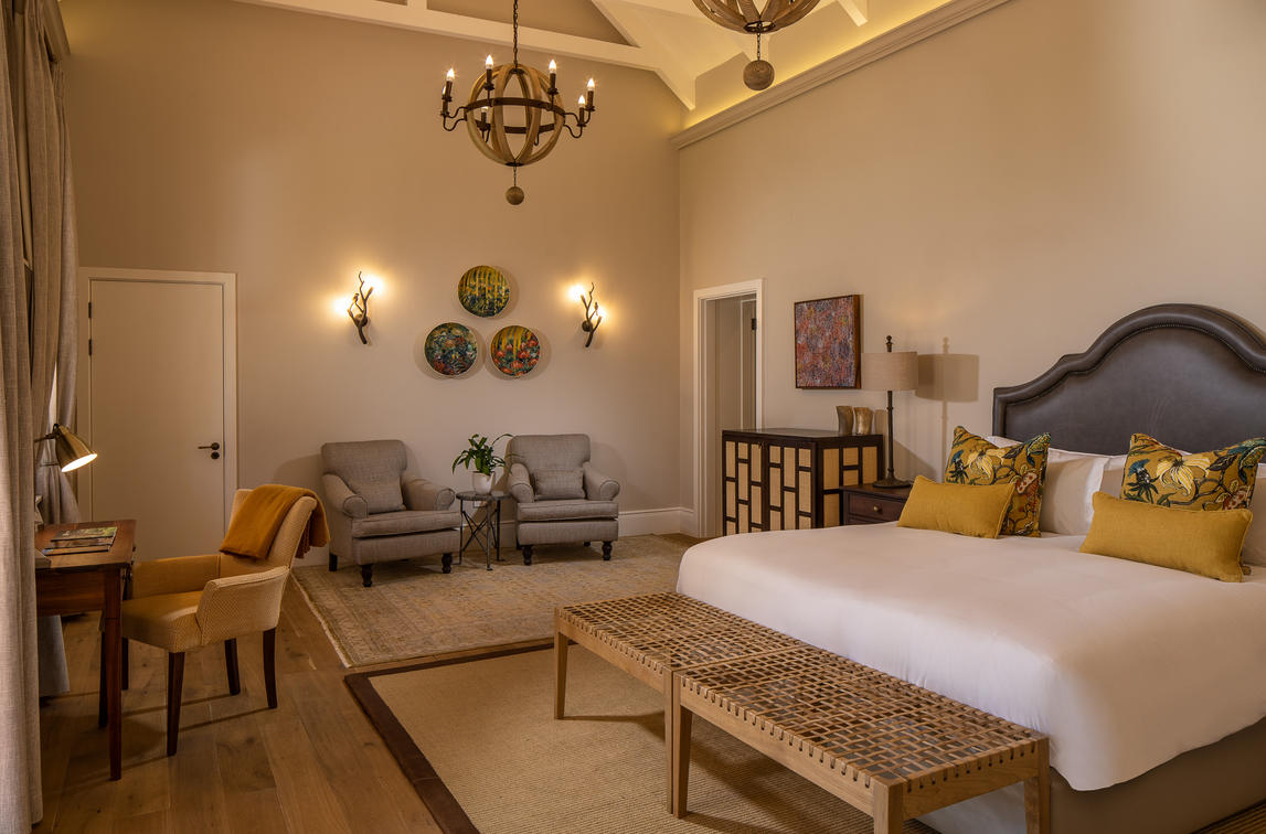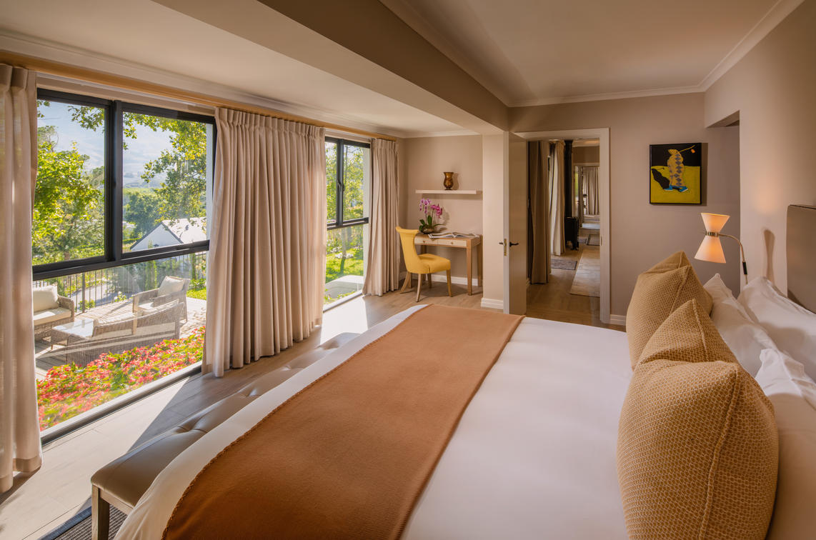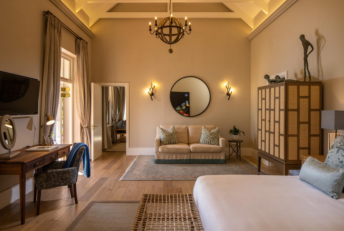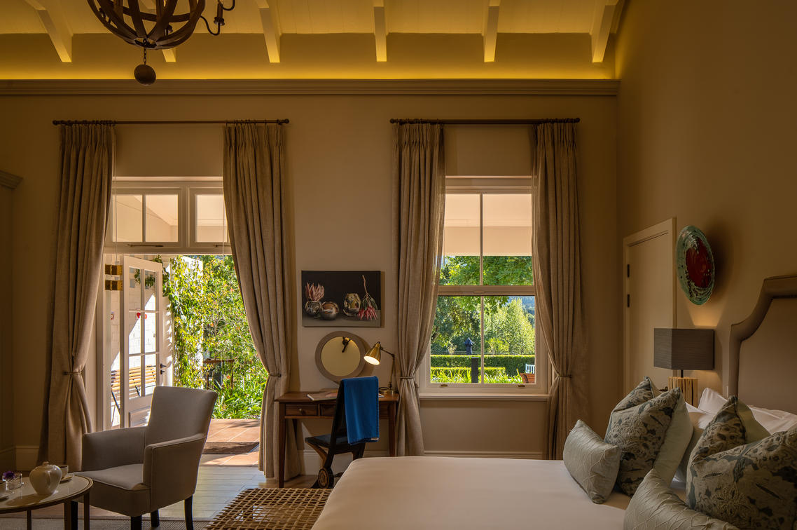 A size of 213m²/2 297ft² and surrounded by vineyards, Max House is housed in an original gabled building that reflects its Cape Dutch heritage. It has a courtyard with a private garden and comprises an Executive Suite, two Classic Rooms, a living room with a fireplace and a dining room. A pantry and a kitchen are available for the use of a private chef, which can be arranged.