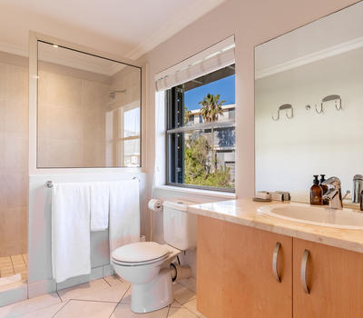 Situated on the ground floor, featuring a deck with ocean views. The bedroom has an en-suite bathroom with enclosed toilet, bath and separate shower, a king size bed which can be converted to twin beds.