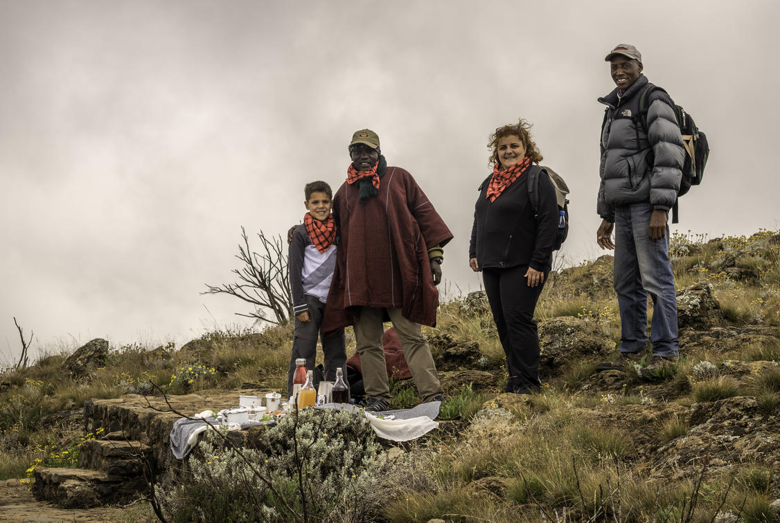 A colobus monkey swings through the branches and we see buffaloes. With a little luck even elephants. On the way we stop for a picknick-lunch on the vast plains of the plateau and enjoy the wonderful views of the summit of the highest mountain in Africa.