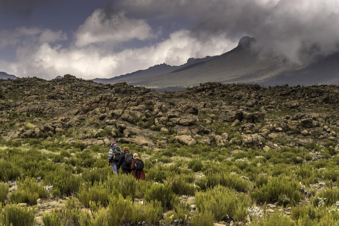 A full day activity starting from Shu‘mata Camp or Hatari Lodge in the open caron with a relaxing 2,5 hours drive right to Mount Kilimanjaro up to a height of 3.400 metres. We cross different climate- and vegetations zones: region of the steppes, lush greens on the entrance to Kilimanjaro National Park and finally alpine scenery. Our goal is the Shira Plateau at the level of 4.000 metres. When the clouds open, we enjoy a magnificent view of the immediate summit of Kilimanjaro. We hike for about one hour on the designated Shira Day Trial through grass, heather and moorland landscapes with up to 10 metres high groundsel herbs.
