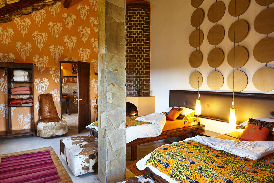 The eight deluxe rooms are decorated with a fun, stylish mix of bright cushions and throws made from local textiles, brightly patterned Kenyan carpets and handpainted-wallpaper peppered with vibrant wall art created by local artists.