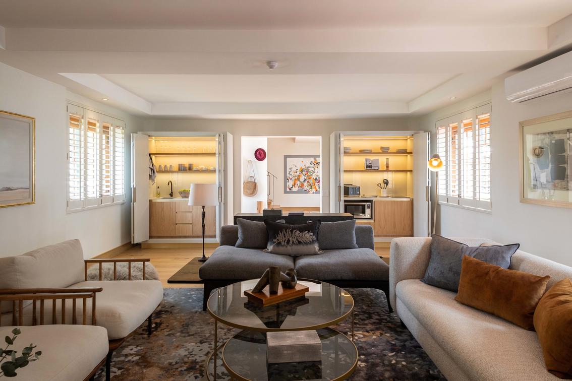 After a day of adventures sink into the couch, enjoy a chilled glass of Steenberg Sauvignon Blanc and be soothed by the perfectly proportioned space, the inspiring art and the anticipation of a long relaxing soak, a light supper at home or a feast at Tryn.