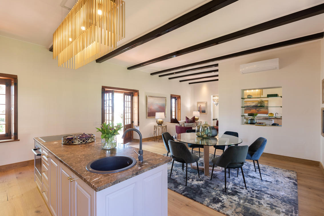 Absolute Luxury. Space at ±160 square meters (±1722 square feet), privacy, your own show kitchen, dining and entertaining area and sumptuous lounge. A generous patio runs the length of the villa overlooking a swathe of vineyards and your private pool. Two beautiful bedrooms and the bathrooms of your dreams.