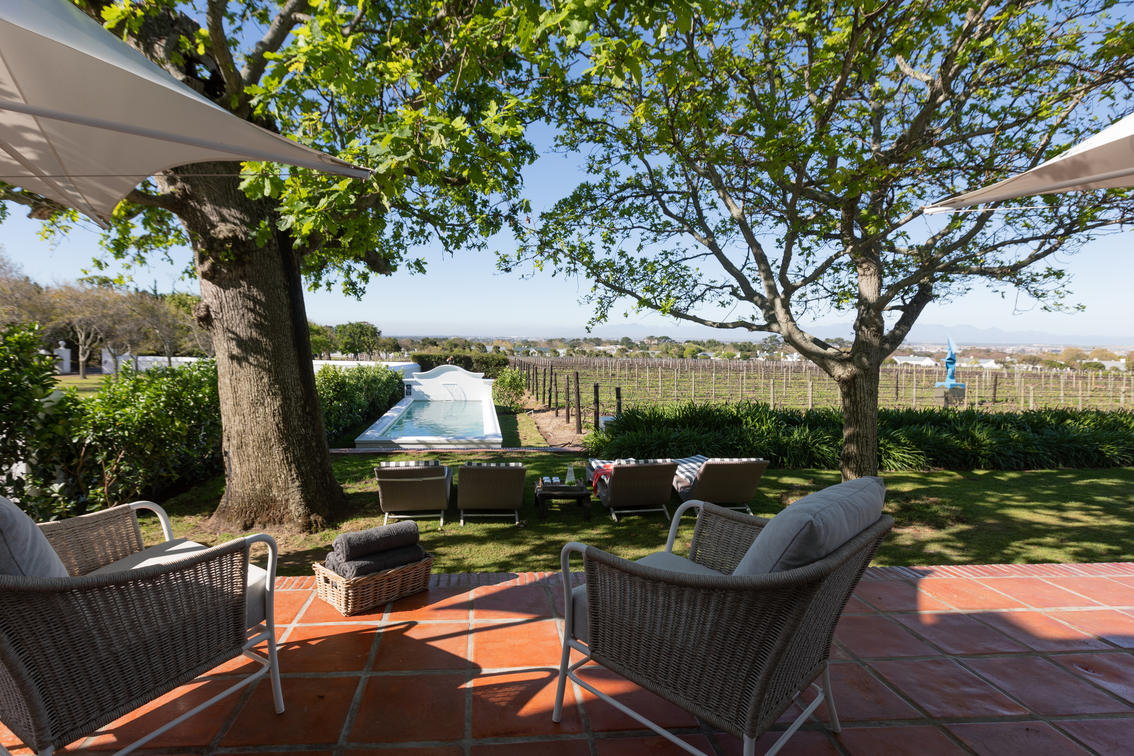 Absolute elegance and pared down luxury combined with an extravagance of outdoor space, your patio leading onto the lawn and generous pool terrace with nothing except vineyards to be seen.