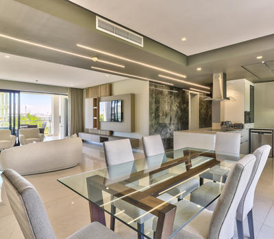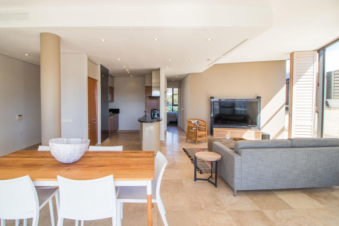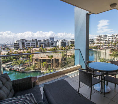 Luxury one bedroom apartments have their own private balconies or patios offering canal views. Each apartment is individually furnished to complement the space and offers an open plan dining and living area.